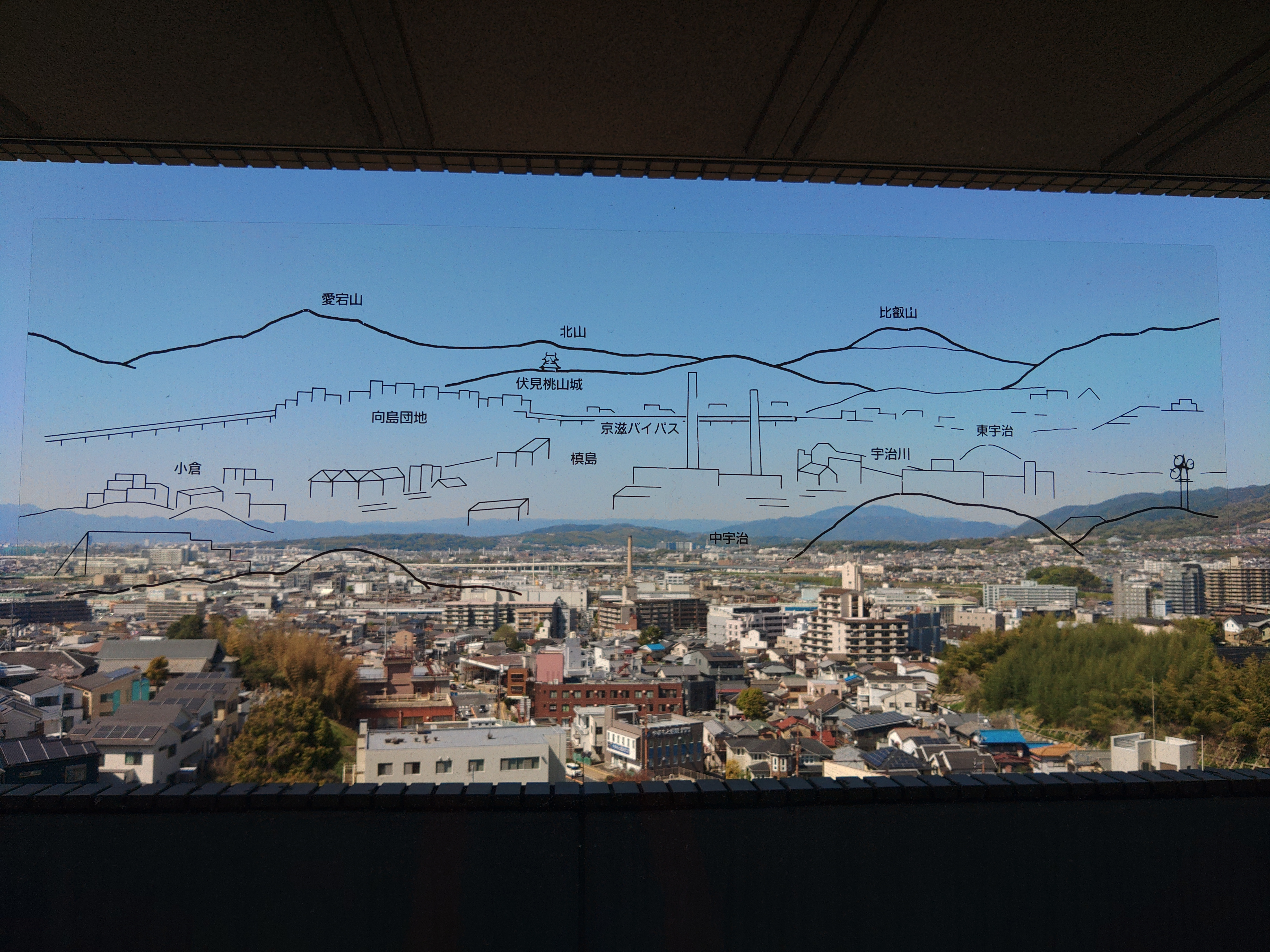北側の壁面が大きく窓ガラスになっていて、宇治市を一望できるようになっています。