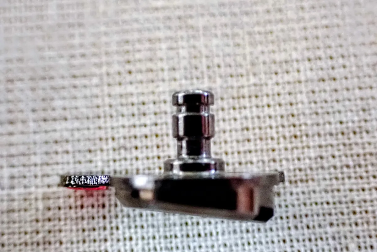 修理過程の分解写真を見ると、ロックノブはやはりEリングで固定されております。それが抜け落ちたということですね。写真をみるとわかるのですが、近くにスピーカーがあるのでEリングはそのマグネットにくっ付いたのでしょう。降っても音がしない訳です。納得しました。