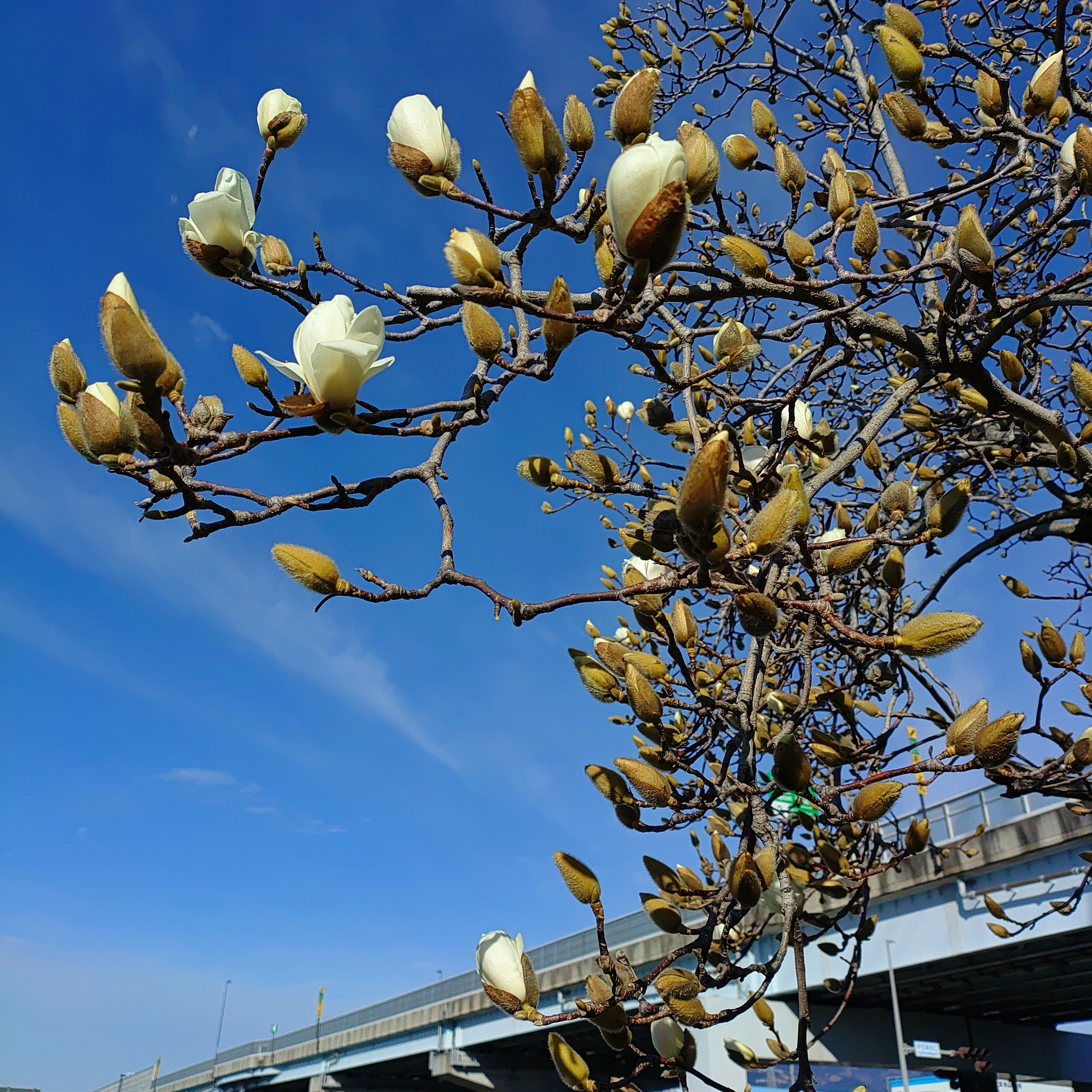 昨日の出勤時に撮影しました。白木蓮やっと咲き初めましたね。