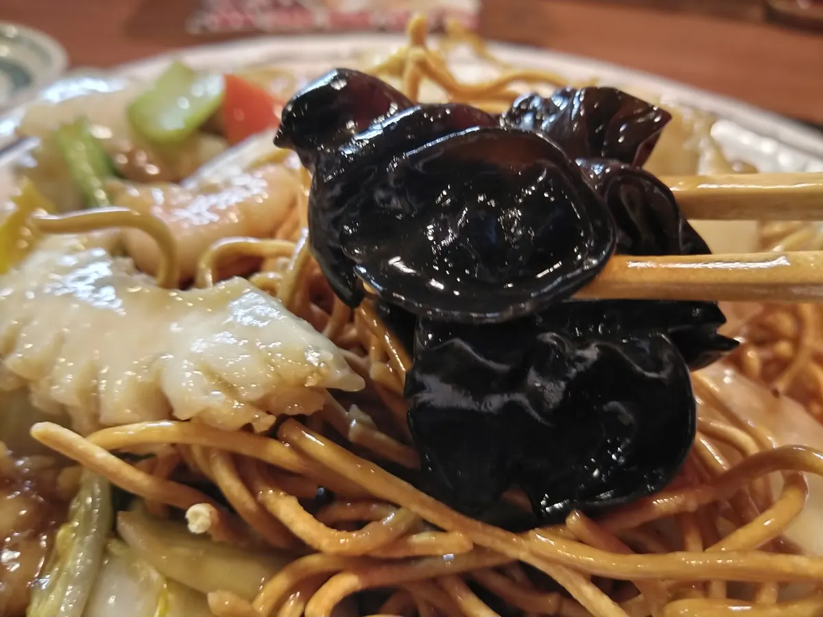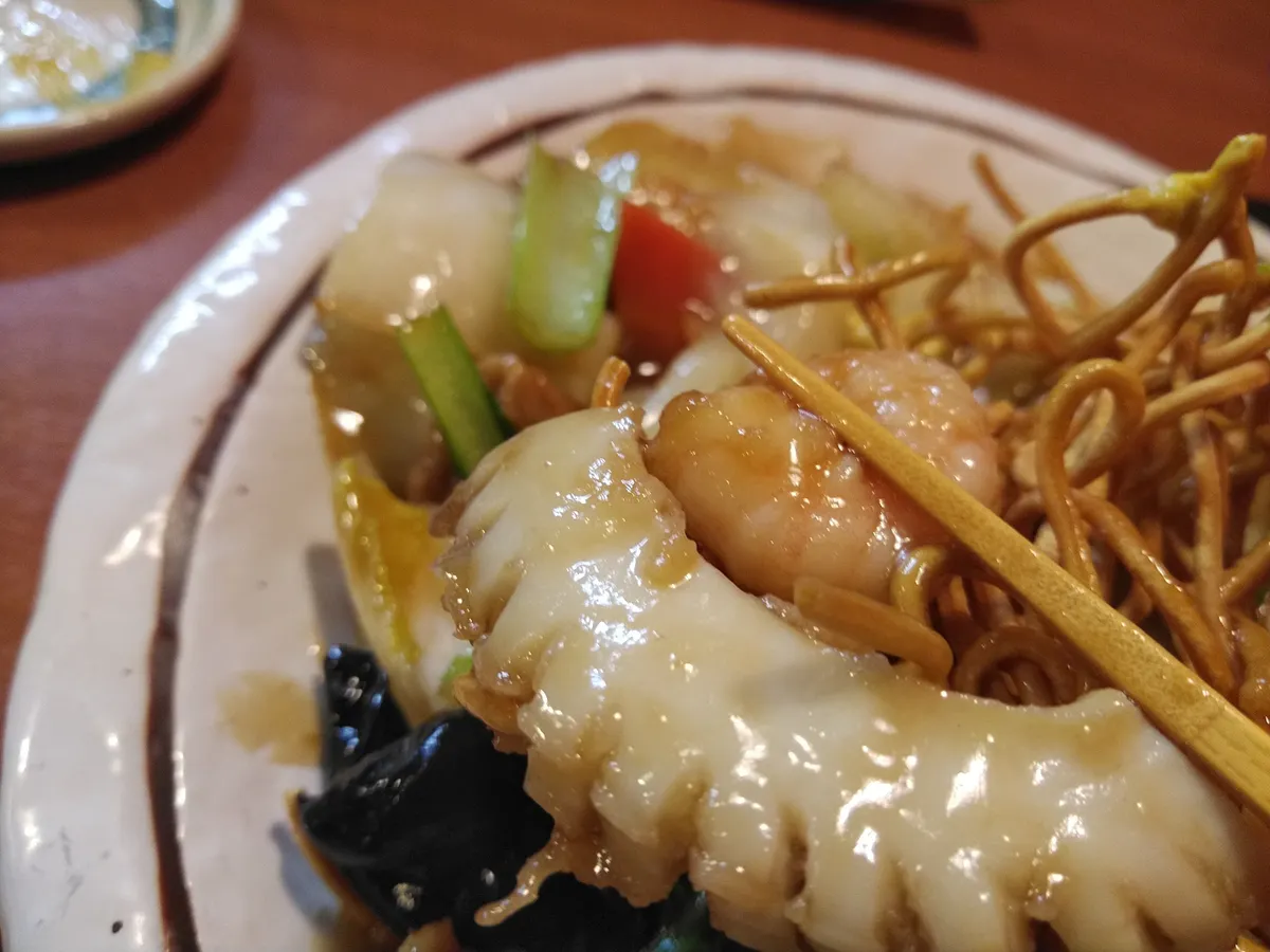 五目餡掛け揚げ焼きそば。