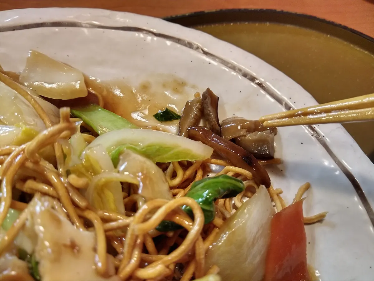 最初はバリバリの麺が餡を吸ってフンニャリとなり2度おいしいです。