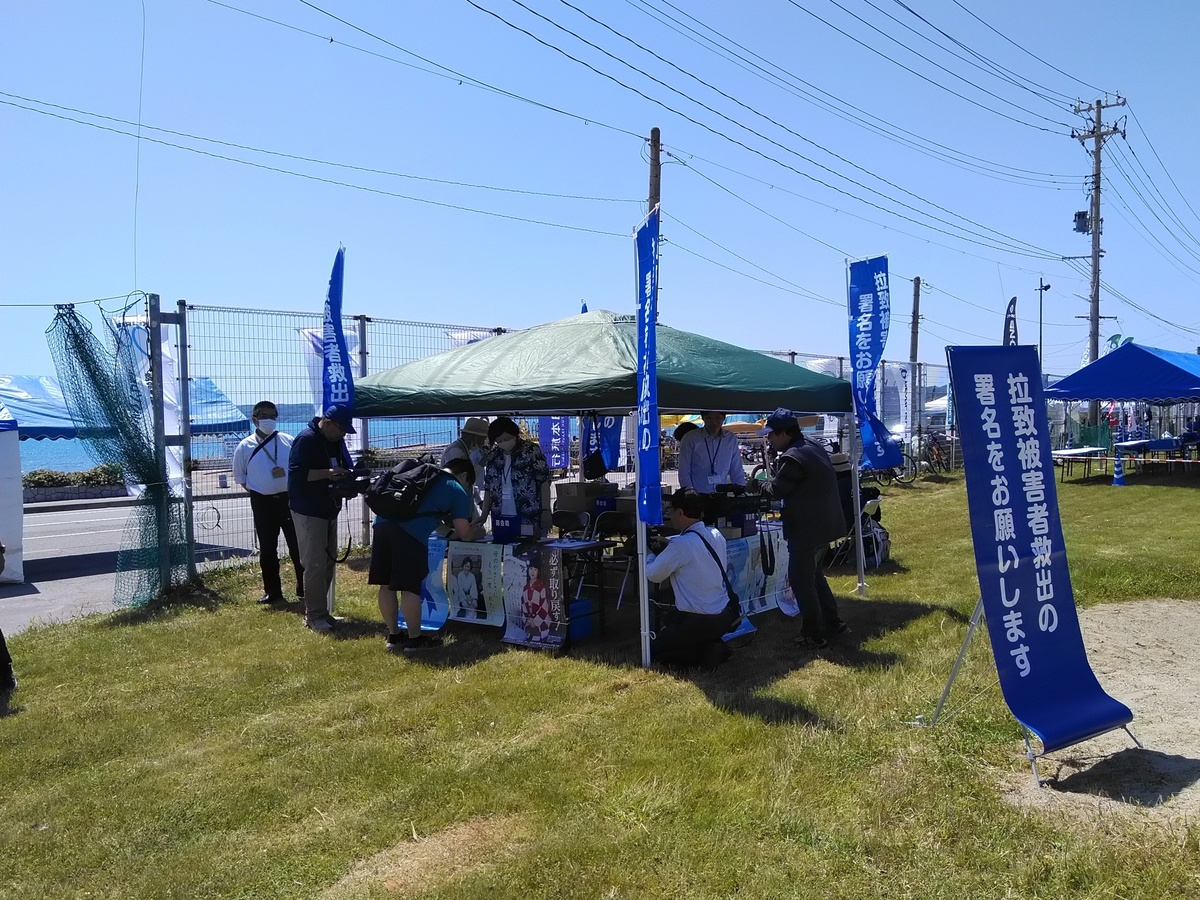 投稿を表示最後から2枚目の拉致被害者救出署名ブースの中に