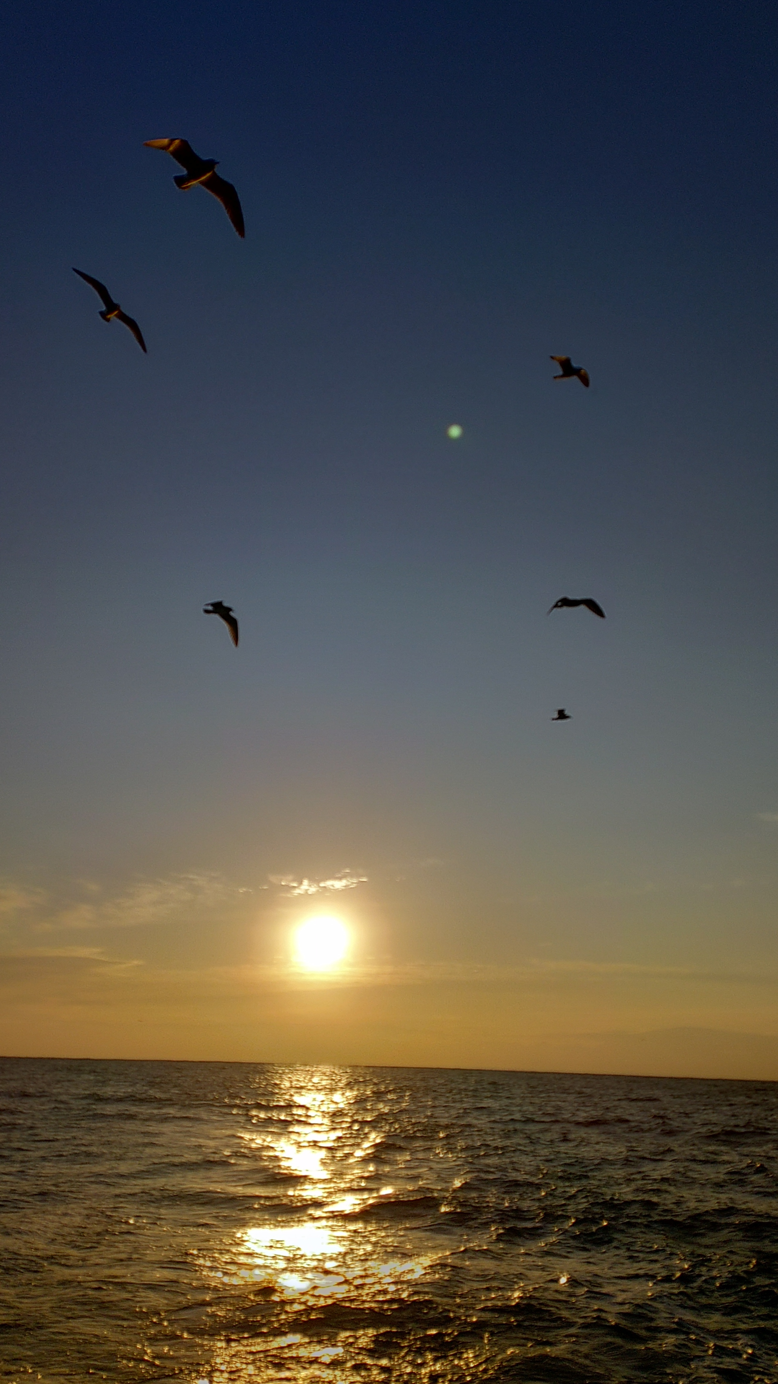 投稿を表示夕暮れの黄昏時にシルエットのカモメ