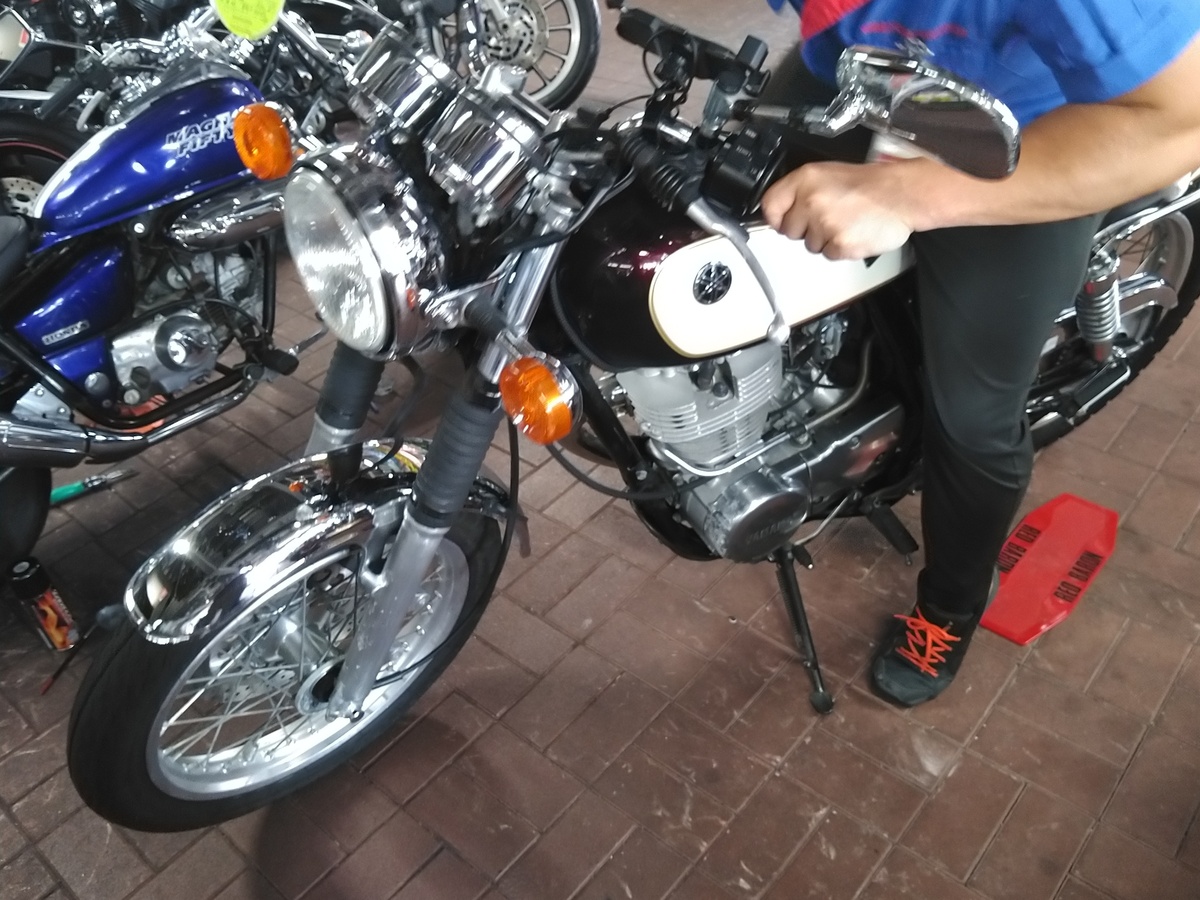 トップ > TORQUEフォト > 07年式ヤマハSR400 gaṇeśa śama 2024/08/30 01:07 07年式ヤマハSR400 (^-^)07年式のヤマハSR400です。右ハンドルとレバーと後ろサスに傷がありましたが、 他は綺麗でした。セルモーターはありません。キックスタートであります。 この角度だと傷がみえませんキックスタート!一発でエンジン始動なるか?キック3回で始動!!!アイドリングではマフラーからの音は静か。ハンドルの振動もそれなりです。 いいね 共有する 共有する X facebook LINE リンクをコピー コメントする 4 件の返信 (新着順) ミュートしたユーザーの投稿です。 投稿を表示 ちゃん 2024/08/30 16:18 いいバイクですね また、バイクを始めたいのですが なかなか踏み切れなくて…😢 いいね 返信する ミュートしたユーザーの投稿です。 投稿を表示 gaṇeśa śama 2024/08/30 23:58 ちゃん SRの造形は浪漫ですねえ いいね 返信する ミュートしたユーザーの投稿です。 投稿を表示 ando-shokai 2024/08/30 08:07 SRはフロントもドラムブレーキが好みです。 いいね 返信する ミュートしたユーザーの投稿です。 投稿を表示 gaṇeśa śama 2024/08/30 23:59 ando-shokai ドラムブレーキで十分ですし見た目も良いですよね。 いいね 返信する ミュートしたユーザーの投稿です。 投稿を表示 ando-shokai 2024/08/31 09:03 gaṇeśa śama 「エンドシュウ」というかたが、通常とは「逆方向」のチューニングをSRでされていますね。 エンドシュウ『SR 低圧縮化』 https://youtu.be/3tB5b3sd0gI?si=PN9zO4ItAKFohuhv エンドシュウ『SR キャブ小口径化』 https://youtu.be/YMlvgZMnzyA?si=LXzEvRiYS-ARmOJZ 昔から二輪も四輪も「速く走る」という方向でしかチューンナップされないのが普通ですが、ゆっくり流して心地良い改造もありだと思います。 「スーパーカブ」なんかで、通常とは逆にフライホイールを重たくするライダーも稀に居ますね。 『フライホイール重量化』 https://ameblo.jp/kurosmeku/entry-12795634985.html いいね 返信する ミュートしたユーザーの投稿です。 投稿を表示 gaṇeśa śama 2024/09/01 00:19 ando-shokai 止まりそうで止まらないエンジンですね。 改造しているので自己責任でありますが。 いいね 返信する ミュートしたユーザーの投稿です。 投稿を表示 にしもん@50s pro 2024/08/30 05:59 疲れてる時のキックはきっと大変です😀☕✨ RGV-Γでセルが付いた時は感動しました😀👍💥 いいね 返信する ミュートしたユーザーの投稿です。 投稿を表示 gaṇeśa śama 2024/08/30 23:59 にしもん@50s pro なにか儀式みたいですよね。キックは。 いいね 返信する ミュートしたユーザーの投稿です。 投稿を表示 gaṇeśa śama 2024/08/30 01:09 単気筒エンジンの突き上げはいかに? ルックスはサイコーですね。 SR400は排ガス規制をクリアできないのでしょう。 いいね 返信する