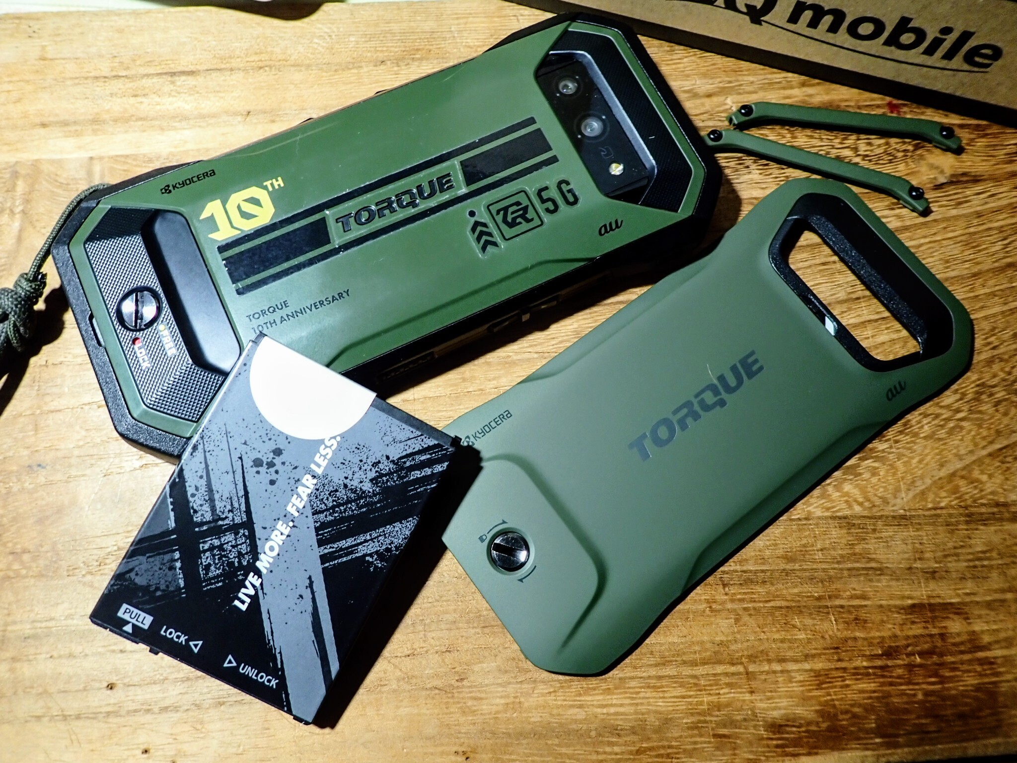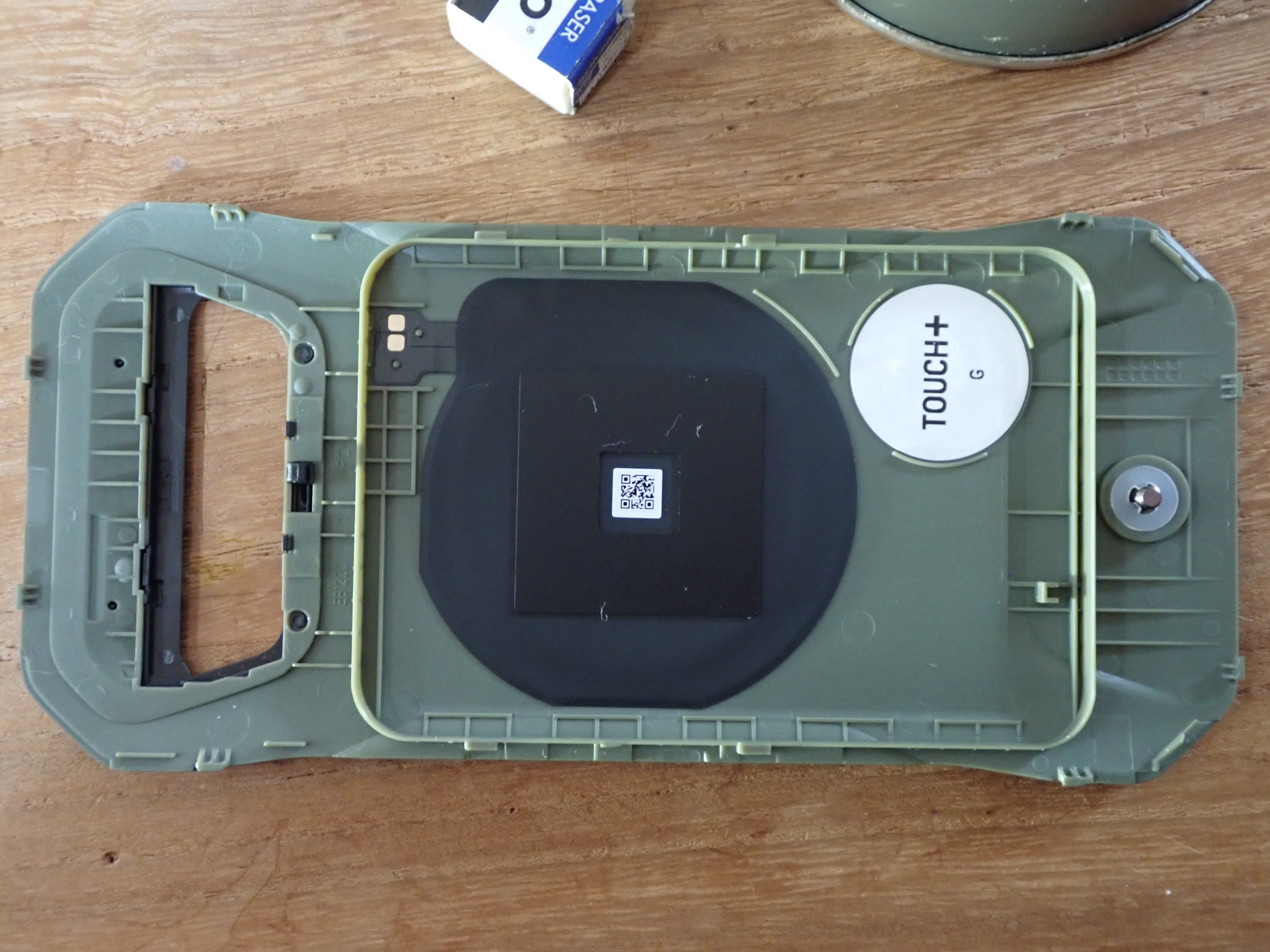 カバーの裏側は至ってシンプルになっています。タッチプラスのタグも地味。因みにワイヤレス充電コイルの中心は、TORQUEロゴの"Q"の位置になっています。
