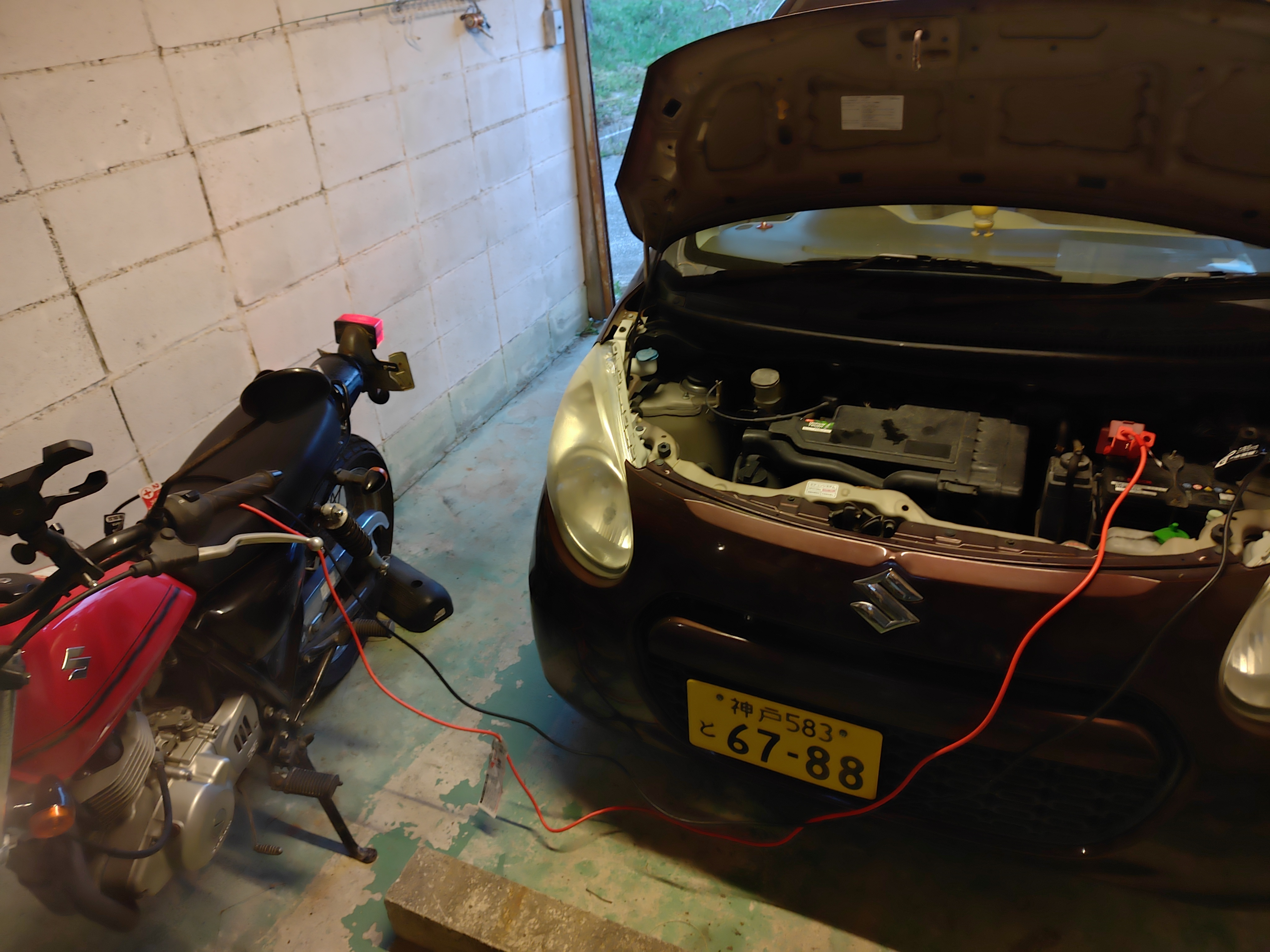トップ > TORQUEフォト > また、車のバッテリーあげてもた😅 ヨイロウ 2026/04/03 19:22 また、車のバッテリーあげてもた😅 やってもた😂 いいね 共有する 共有する X facebook LINE リンクをコピー コメントする 4 件の返信 (新着順) ミュートしたユーザーの投稿です。 投稿を表示 まっちゃ 2026/04/04 15:51 車用の充電器を買いましょう 意外と安いです バイクの方の内部のハーネス類が心配です⚡️ 容量が小さいから負荷かかると溶けますよ🪫💥 いいね 返信する ミュートしたユーザーの投稿です。 投稿を表示 ヨイロウ 2026/04/04 19:55 まっちゃ 年に数回やから 悩む笑 そうします✌️ いいね 返信する ミュートしたユーザーの投稿です。 投稿を表示 gaṇeśa śama 2026/04/04 11:31 バイクからのチャージってことで、ストロンガーが電気不足になった時にカブトローから 立花さんが城茂にケーブルをつなげてくれていた事を思い出しました。 いいね 返信する ミュートしたユーザーの投稿です。 投稿を表示 ゆーろ 2026/04/03 19:34 セルモーターピニオン音すら出ないくらいの放電だったなら近いうちにバッテリー交換オススメします 極板が傷んでるので正常なバッテリーに比べてある程度放電したら一気に電圧下がるはずです エアコン使うようになったら…突然😱 いいね 返信する ミュートしたユーザーの投稿です。 投稿を表示 ヨイロウ 2026/04/04 04:15 ゆーろ そうします ありがとう✌️ いいね 返信する ミュートしたユーザーの投稿です。 投稿を表示 にしもん@50s pro 2026/04/03 19:33 全部丸見えです💥😀🍺💦 バイクの発電量で足りるのが凄い‼️ いいね 返信する ミュートしたユーザーの投稿です。 投稿を表示 ヨイロウ 2026/04/04 04:04 にしもん@50s pro 30分ほど 線をつないでおいて その後 エンジン始動 、 エンジン かかればあと30分ぐらい走ってきます いいね 返信する