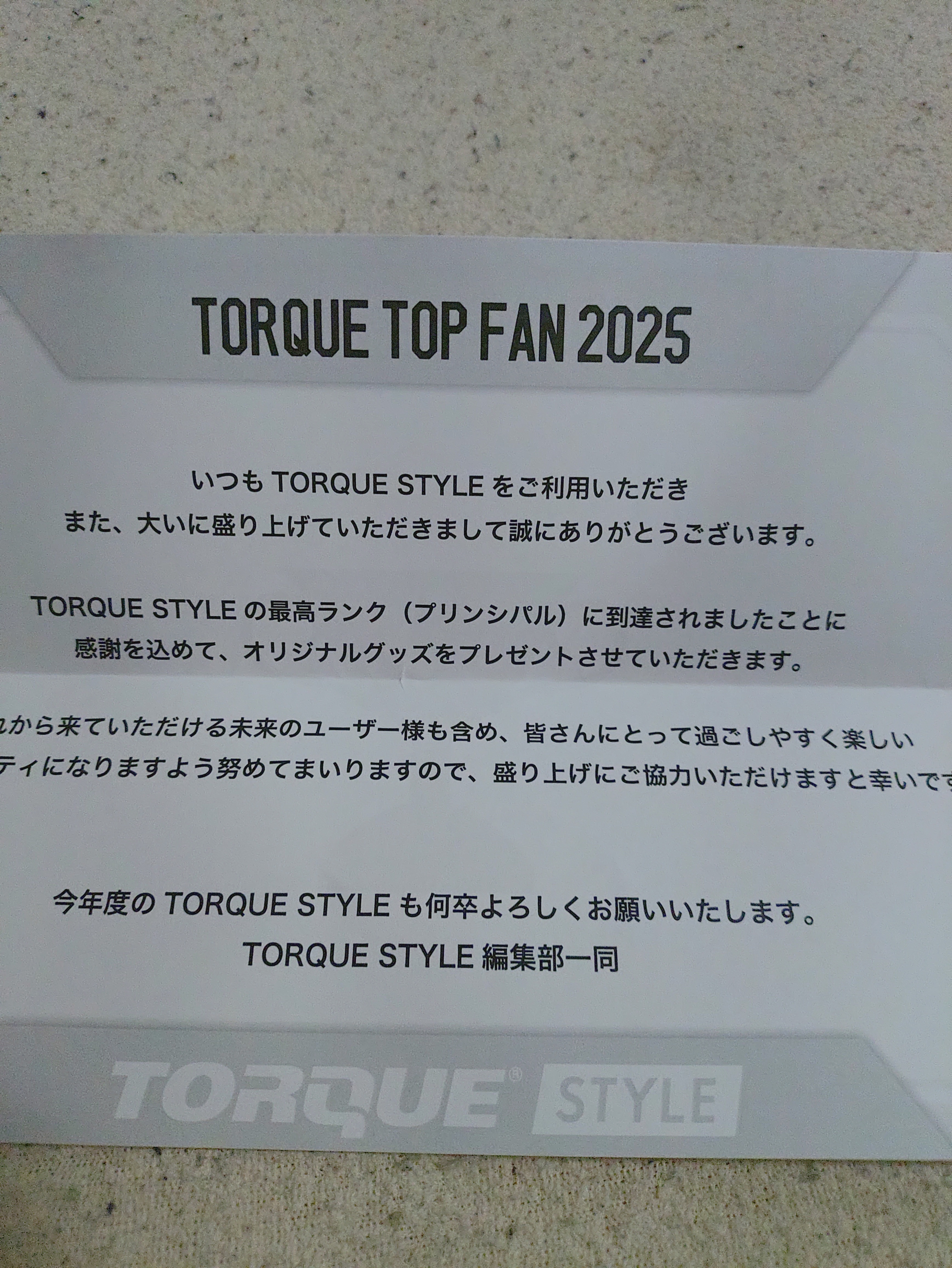 これからも、このTORQUE STYLEをみんなで楽しく盛り上げていきましょう。🤗