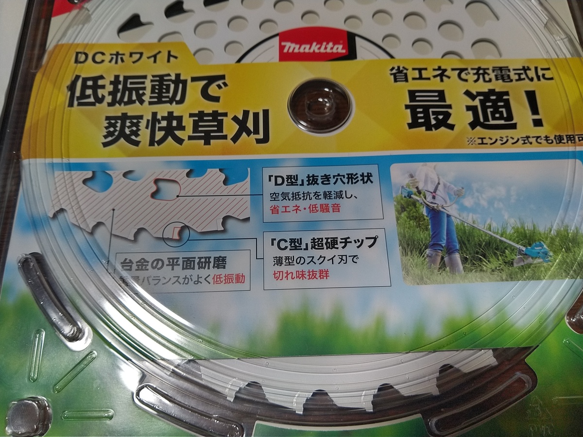 エンジンの刈払機より低振動である電動式なのでマキタ純正のチップソーへの