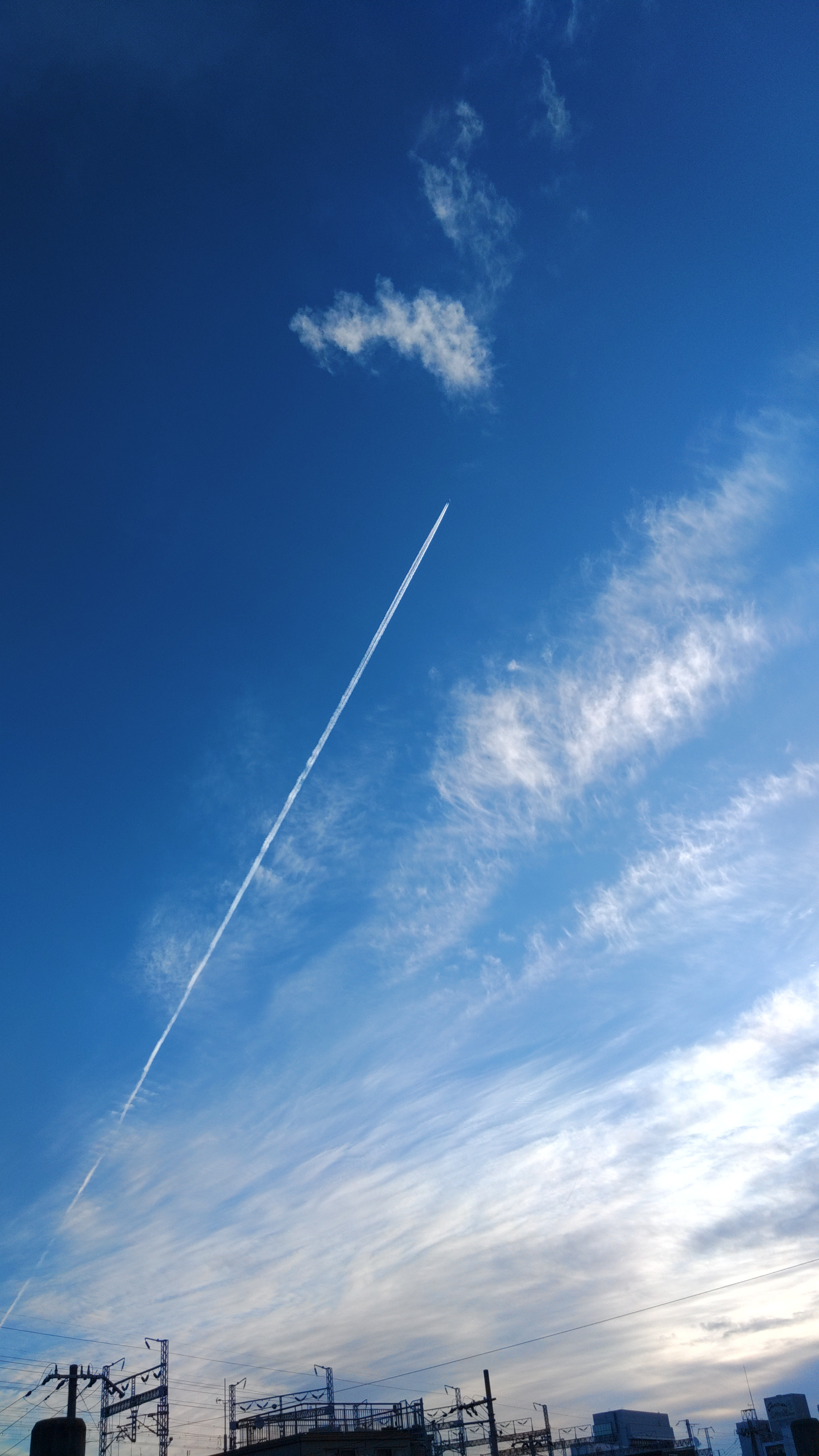 投稿を表示青空にしゅーんと伸びる飛行機雲。清々しい気持ちになります。一日の良いスタートになります。