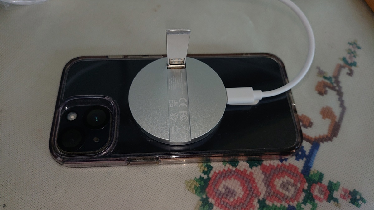 MagSafeワイヤレス充電器です😀👍✨1000円くらいだったかな❓️🍎に繋げると、、、