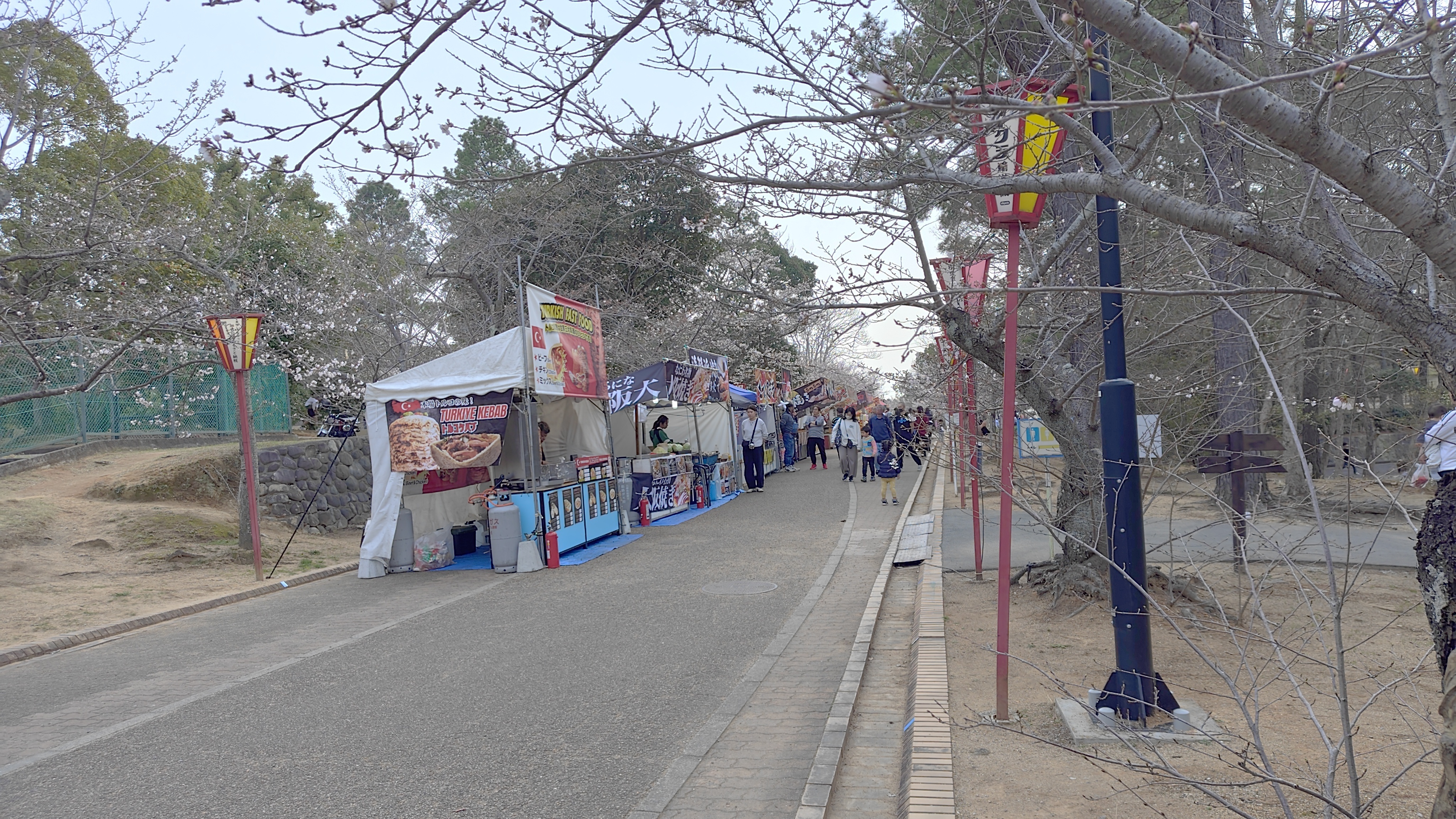 今回の撮影場所は某公園ですが、ライトアップ準備も進んで夜店が桜の木の前にズラリ。。。😨