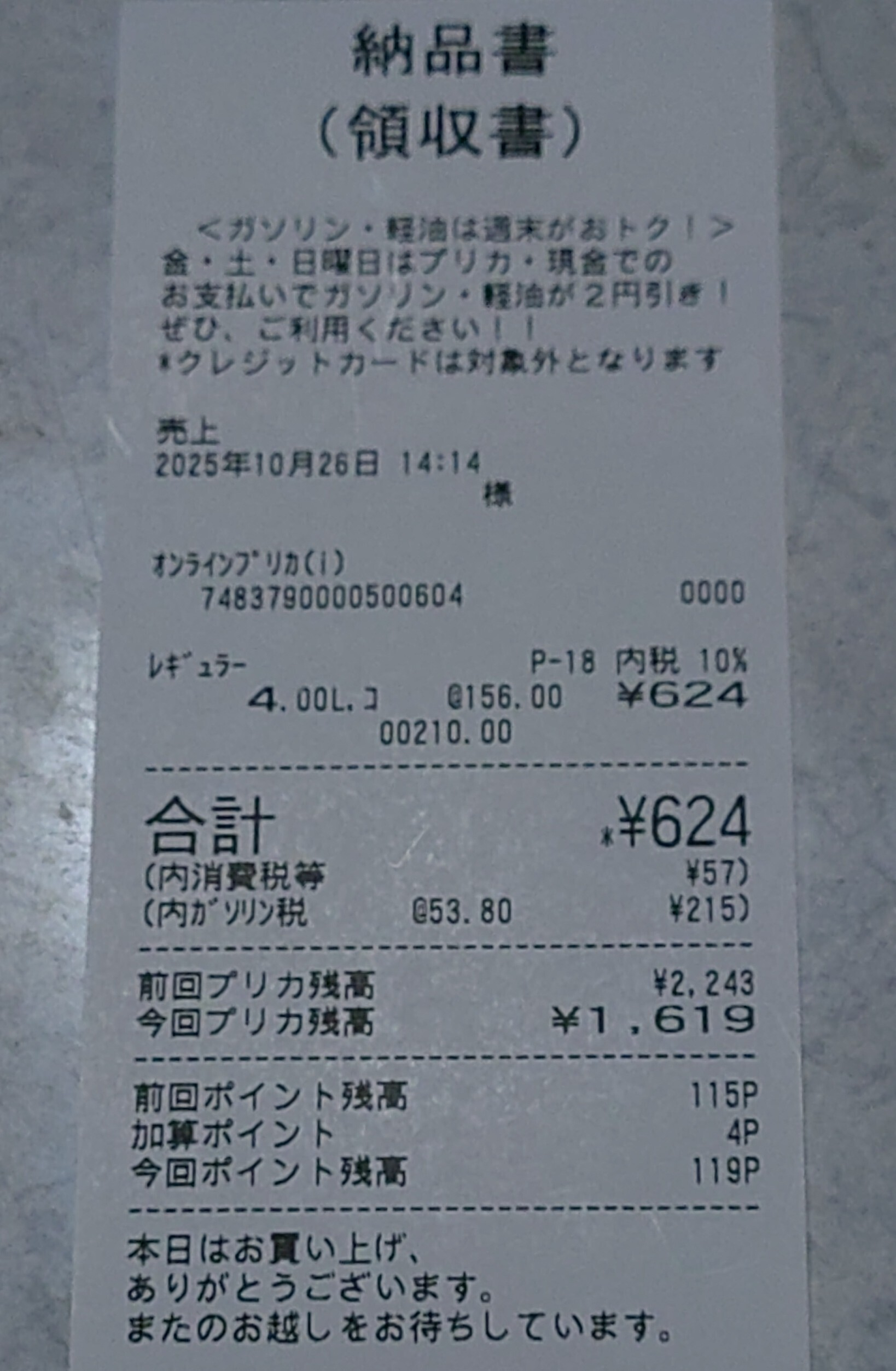 投稿を表示よく利用するセルフより¥10くらい安いかな。😯