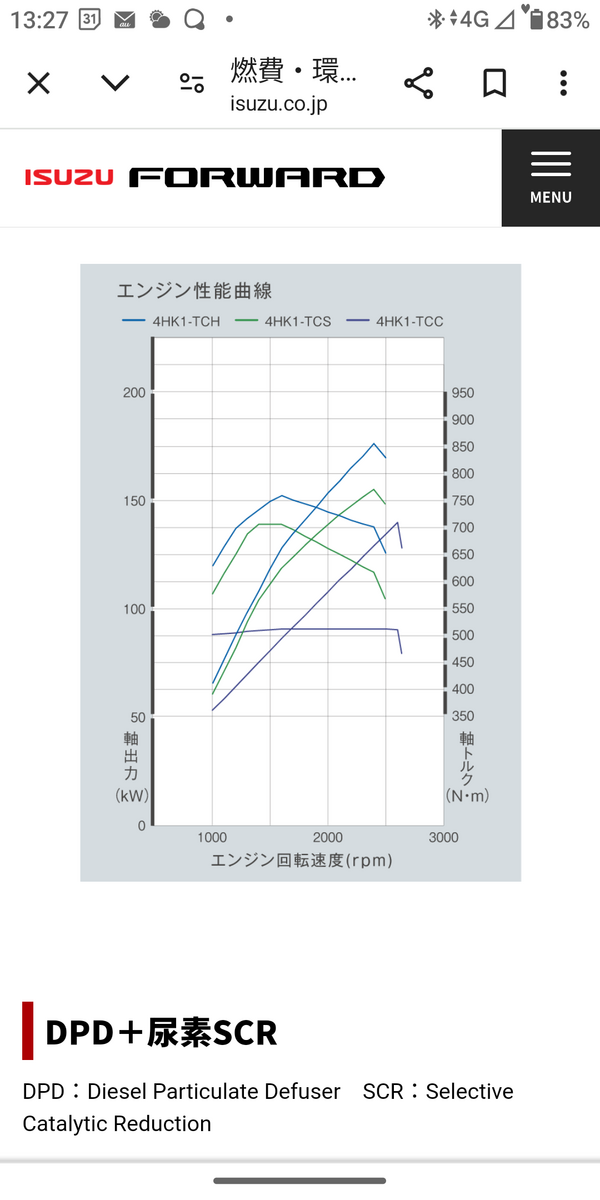 トップ > TORQUEフォト > 5200cc直列4気筒ツインターボエンジン😀✨ にしもん@50s pro 2024/04/10 13:58 5200cc直列4気筒ツインターボエンジン😀✨ トラック🚛のエンジンです。 210馬力トルク70キロ位あります💪😀 ターボがターボにくっついている?😀✨中々面白い吸気システム😀 緑のラインです💪✨下のトルクが無くて高速道路仕様みたいですね😅 現在オイル交換中〜 フォワード07 いいね 共有する 共有する X facebook LINE リンクをコピー コメントする 5 件の返信 (新着順) ミュートしたユーザーの投稿です。 投稿を表示 まっちゃ 2024/04/10 21:50 めちゃくちゃ速そうなエンジンですね。RB26もツインターボでしたね。 いいね 返信する ミュートしたユーザーの投稿です。 投稿を表示 にしもん@50s pro 2024/04/10 22:45 まっちゃ 6気筒から4気筒になってどうかな?と思いましたが、かなり実用的なエンジンですね😀🍺面白みは無いけど不満も無いです😅 ウチのRB26はシングルターボです✨ いいね 返信する ミュートしたユーザーの投稿です。 投稿を表示 退会したユーザー 2024/04/10 16:02 ほぉぉ…余りお目にかかれないトラックのエンジンルーム、ありがとうございます( =^ω^) 詳しく分からないですが見るの好きです(>∀<) いいね 返信する ミュートしたユーザーの投稿です。 投稿を表示 にしもん@50s pro 2024/04/10 22:49 退会したユーザー ギガのエンジンは更に凄いらしいです😀🍺 いいね 返信する ミュートしたユーザーの投稿です。 投稿を表示 退会したユーザー 2024/04/11 00:07 にしもん@50s pro へぇ…ワタクシみたいな素人が触っちゃいけなさそうですね( ; ゚Д゚) いいね 返信する ミュートしたユーザーの投稿です。 投稿を表示 にしもん@50s pro 2024/04/11 06:42 退会したユーザー プロでも嫌がるかと😅☕ なんせ制御系の配管が多い🥲 オイル交換とかは簡単ですよ✨ いいね 返信する ミュートしたユーザーの投稿です。 投稿を表示 きな☆彡 2024/04/10 15:03 エルフは9速デュアルクラッチトランスミッションと高圧・低圧の2種類のターボチャージャーを使用する2ステージターボが搭載されているとGoogle先生に教えてくれましたのであんなに早いと納得ですよ😅 いいね 返信する ミュートしたユーザーの投稿です。 投稿を表示 ran 2024/04/10 17:10 きな☆彡 ターボでガンガン酸素(空気)を送り込んで燃料もバシバシ噴射・・・ って、燃料大食いしそうですね。 今どきの車は燃費も良くなっているのでしょうか? いいね 返信する ミュートしたユーザーの投稿です。 投稿を表示 にしもん@50s pro 2024/04/10 22:50 きな☆彡 エルフってターボ無いんじや、、、😅🍺 いいね 返信する ミュートしたユーザーの投稿です。 投稿を表示 にしもん@50s pro 2024/04/10 22:55 ran このトラックはリッター5.6キロです😅✨ いいね 返信する ミュートしたユーザーの投稿です。 投稿を表示 きな☆彡 2024/04/11 03:15 にしもん@50s pro ハスラー四駆×ターボの平均燃費は21.5/㍑ですよ😅 いいね 返信する ミュートしたユーザーの投稿です。 投稿を表示 にしもん@50s pro 2024/04/11 06:34 きな☆彡 キャリィはローギヤードなんでリッター15くらいです🥲☕ いいね 返信する ミュートしたユーザーの投稿です。 投稿を表示 ran 2024/04/11 06:52 にしもん@50s pro おはようございます😃 燃費はアメ車なみですね。 でも軽油だから実質は・・・ ちなみにM-1戦車は1リットルで250m以下とか・・・ ところで、ディーゼル車の尿素水はどの程度で補給して、いくら位掛かるのですか? いいね 返信する ミュートしたユーザーの投稿です。 投稿を表示 にしもん@50s pro 2024/04/11 09:43 ran アドブルーですね✨ 大体リッター130円位でしょうか?店によります。 ウチのフォワード4tの場合は大体300リッター軽油入れたらアドブルーは10リッター位入ります。店の人も適当です。 マツダのクリーンディーゼルも実はメンテナンス費用やアドブルーとかでお財布には全然クリーンでは無いですね🥲 あっスッカラカンになるからクリーンなのかも😅💦 いいね 返信する ミュートしたユーザーの投稿です。 投稿を表示 ran 2024/04/11 11:56 にしもん@50s pro そうそれ、アドブルーつて名前でしたね 給油の度に入れるのですか? それじゃ軽油車のトータルコストは決して安くはないですよね? おサイフに優しくなくてブルーな気持ちが付け加えられるから「add+Blue」なんて(笑) いいね 返信する ミュートしたユーザーの投稿です。 投稿を表示 にしもん@50s pro 2024/04/11 12:13 ran 今は重機でもディーゼルは入れないと動かないから大変です😀💦 トルク無くても良いならガソリンの方が長持ちしそうです。😅 いいね 返信する ミュートしたユーザーの投稿です。 投稿を表示 にしもん@50s pro 2024/04/11 17:32 ran 乗用車はわかりませんが、大体2回に1回は入れないと再始動できないと思います😅 運転中にアドブルーが切れた場合はまだ、動きます。 が、止めるとアドブルーいれるまでエンジンはかかりません💦 いいね 返信する ミュートしたユーザーの投稿です。 投稿を表示 ran 2024/04/11 21