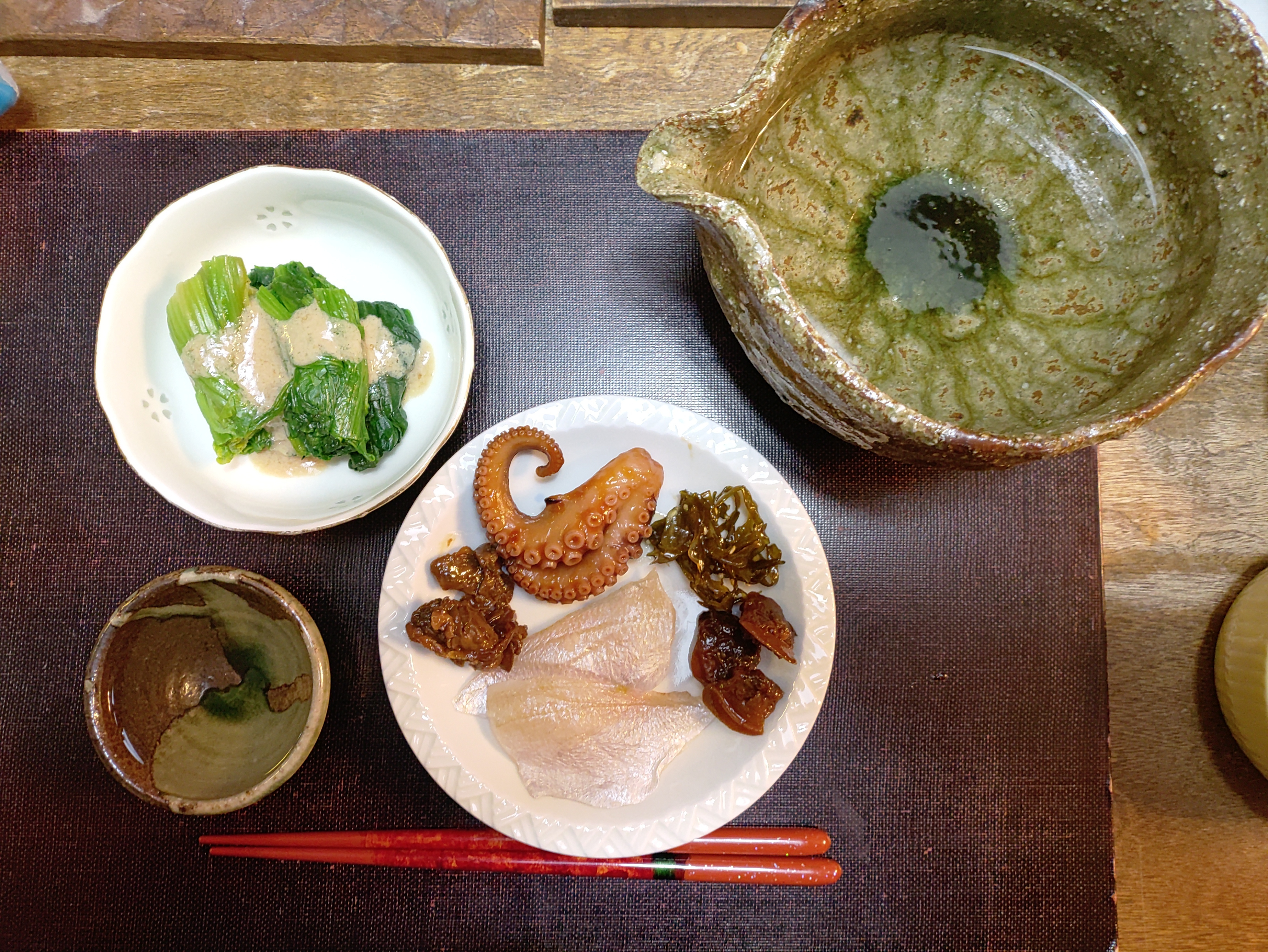 タコ🐙と牡蠣🦪と蛤と新物のめかぶ