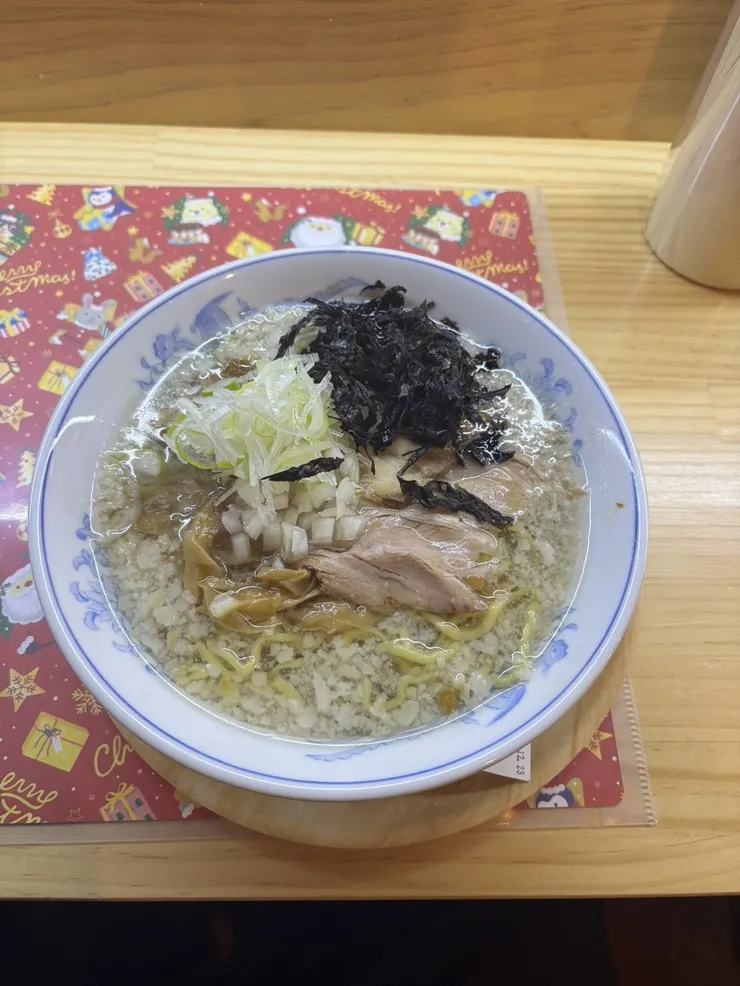 私が食べたのは、宗田節黒ラーメン。個人的にめちゃウマでした。同僚が食べたのはこってり塩ラーメンだそうですが、こってり感が少なく美味しく食べやすかったそうです。