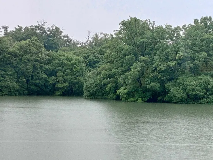 行ってみたらアオサギ飛んでさっき通った方へ~真ん中の白い管の少し右上~戻る元気は無し~(笑)