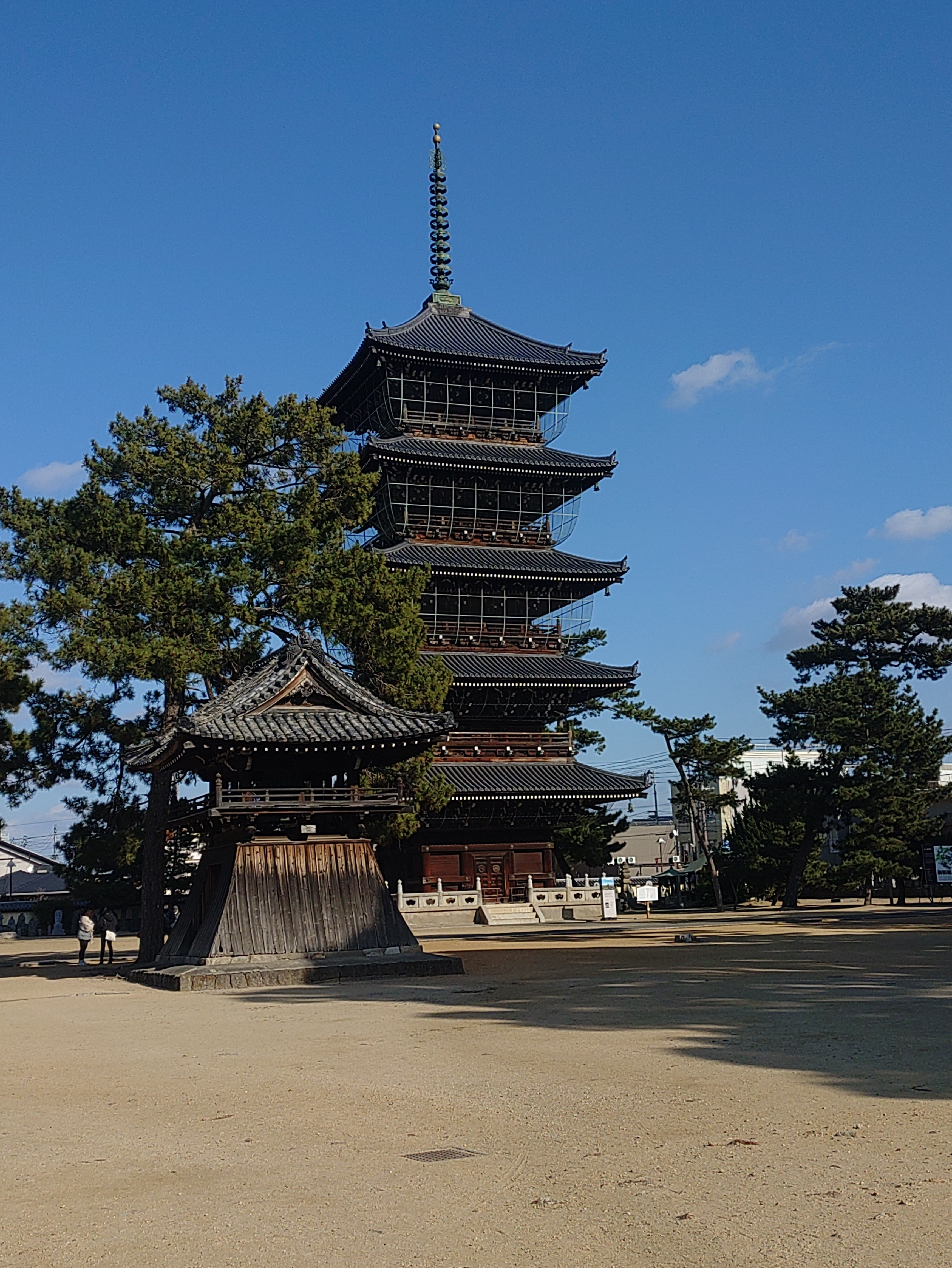 手前に見える建物は鐘突き堂かな?