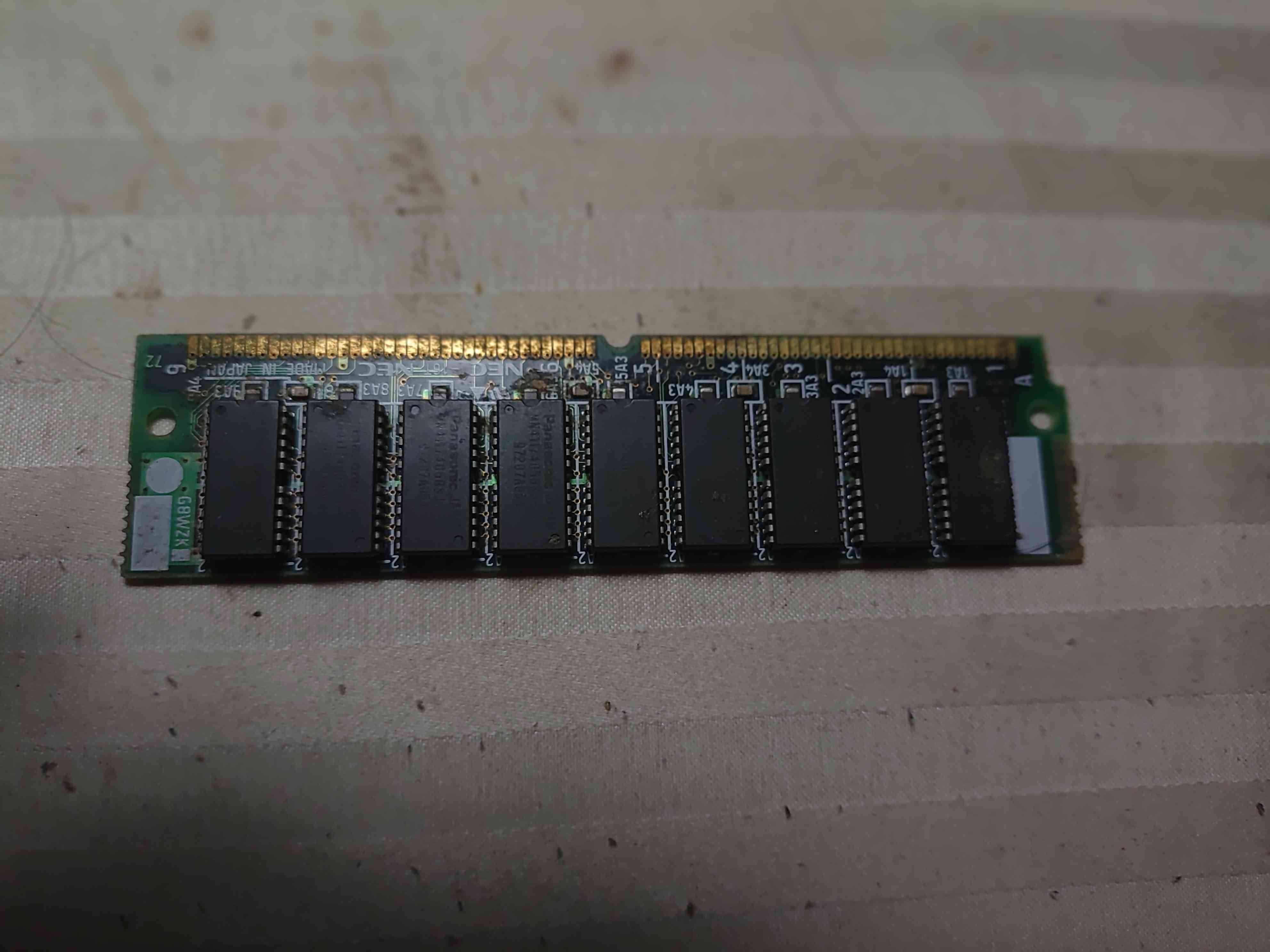 トップ > TORQUEフォト > 大昔のデスクトップPC用メモリー マンボウ 2024/11/02 16:34 大昔のデスクトップPC用メモリー 引き出しの片隅で今でも眠っている大昔のメモリー、片面実装で手頃なサイズだからシールを剥がす時のスクレーパー代わりとして使ってます。 日本がまだ半導体立国だった時代に製造されたNEC社製の国内製造品、今となっては珍しいメイドイン・ジャパンですよ。 こんな古い物、メルカリに出品しても売れないだろうな…… いいね 共有する 共有する X facebook LINE リンクをコピー コメントする 2 件の返信 (新着順) ミュートしたユーザーの投稿です。 投稿を表示 にしもん@50s pro 2024/11/02 23:13 当時は何ギガだったのでしょうか、、、ギガも行かなかった記憶が、、😅💦 いいね 返信する ミュートしたユーザーの投稿です。 投稿を表示 マンボウ 2024/11/02 23:19 にしもん@50s pro たしか、当時はメガバイトだったと思いますよ。(うろ覚え) ……もしかしたらキロバイトだったかも(苦笑) いいね 返信する ミュートしたユーザーの投稿です。 投稿を表示 まっちゃ 2024/11/02 22:11 NECさんの半導体工場あったのに経営不振でエルピーダになって破産しちゃいましたね。 シャープさんも撤退しましたし。 ヤマハさんのFM音源チップの半導体工場はロームさんが買ったんだったかな。 リコーさんの半導体工場は任◯堂さんがファミコンで助けた。 NHKの電子立国日本がまた再放送してくれないかな。 いいね 返信する ミュートしたユーザーの投稿です。 投稿を表示 マンボウ 2024/11/02 23:22 まっちゃ 現在の日本の半導体業界は惨敗状態ですよね、大手企業さんに頑張ってもらって復権して欲しいですよ。 いいね 返信する
