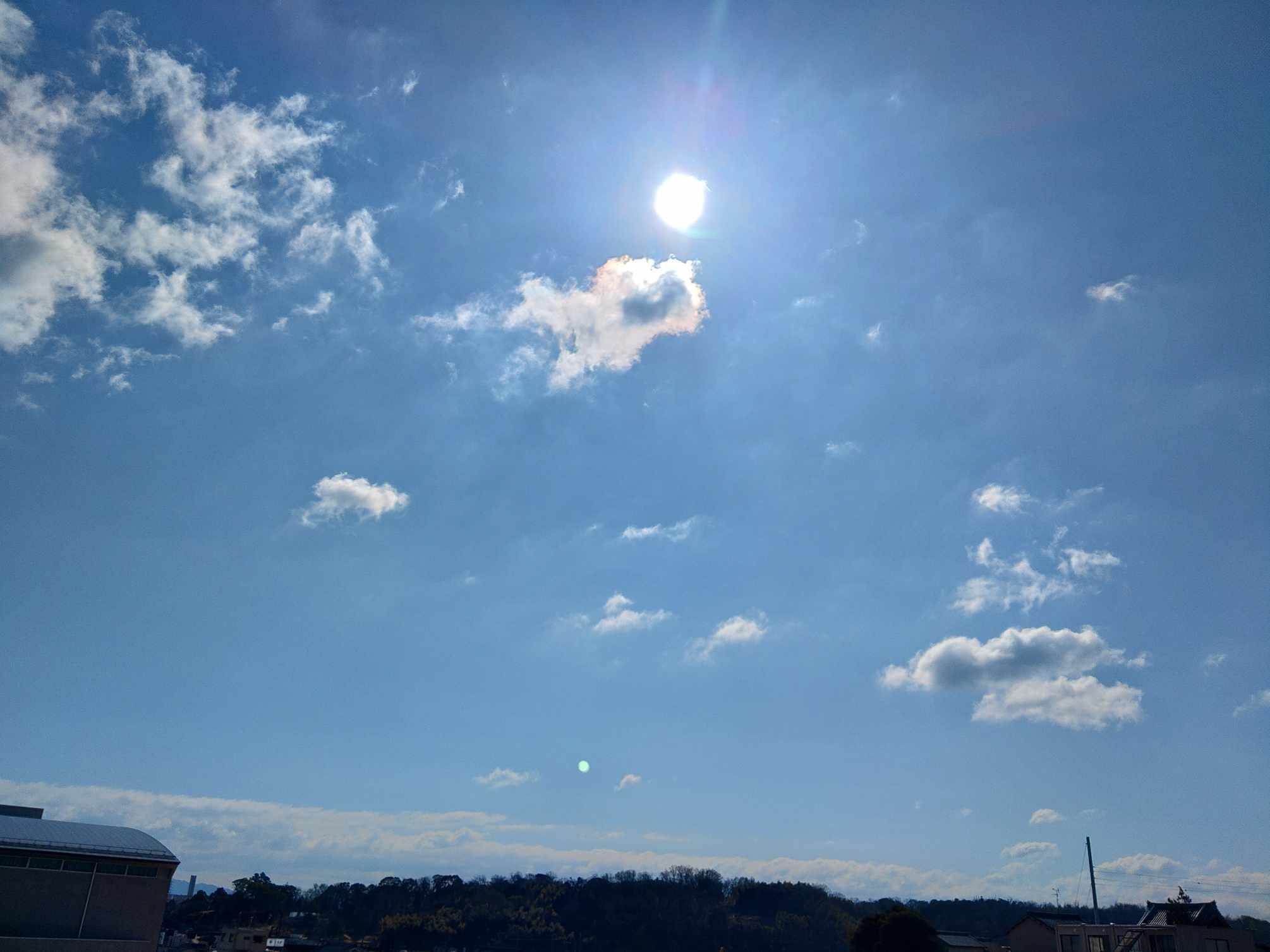 ☀️太陽の下の雲が🌈彩雲ですね😊