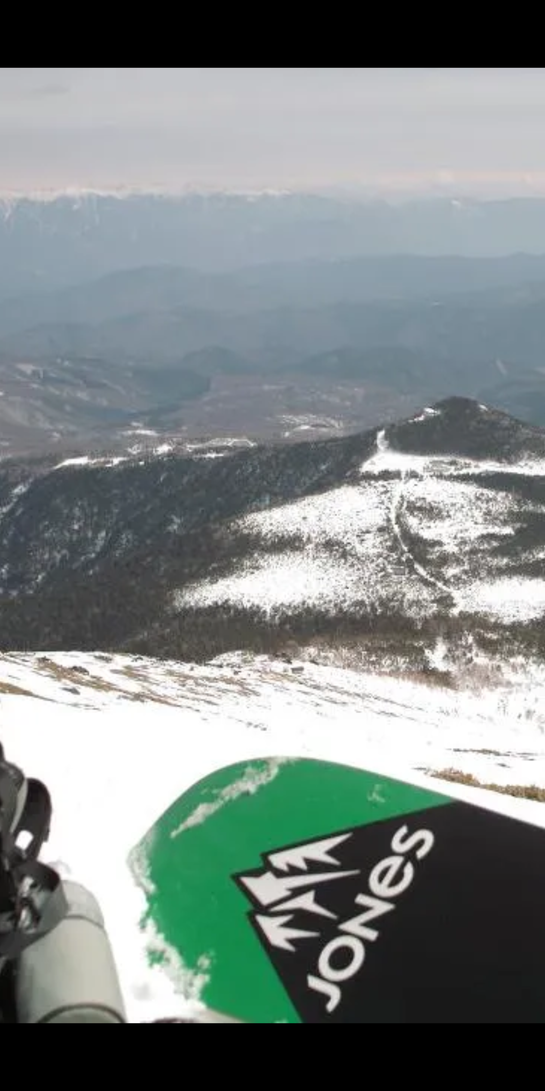 スノーボードを背負って