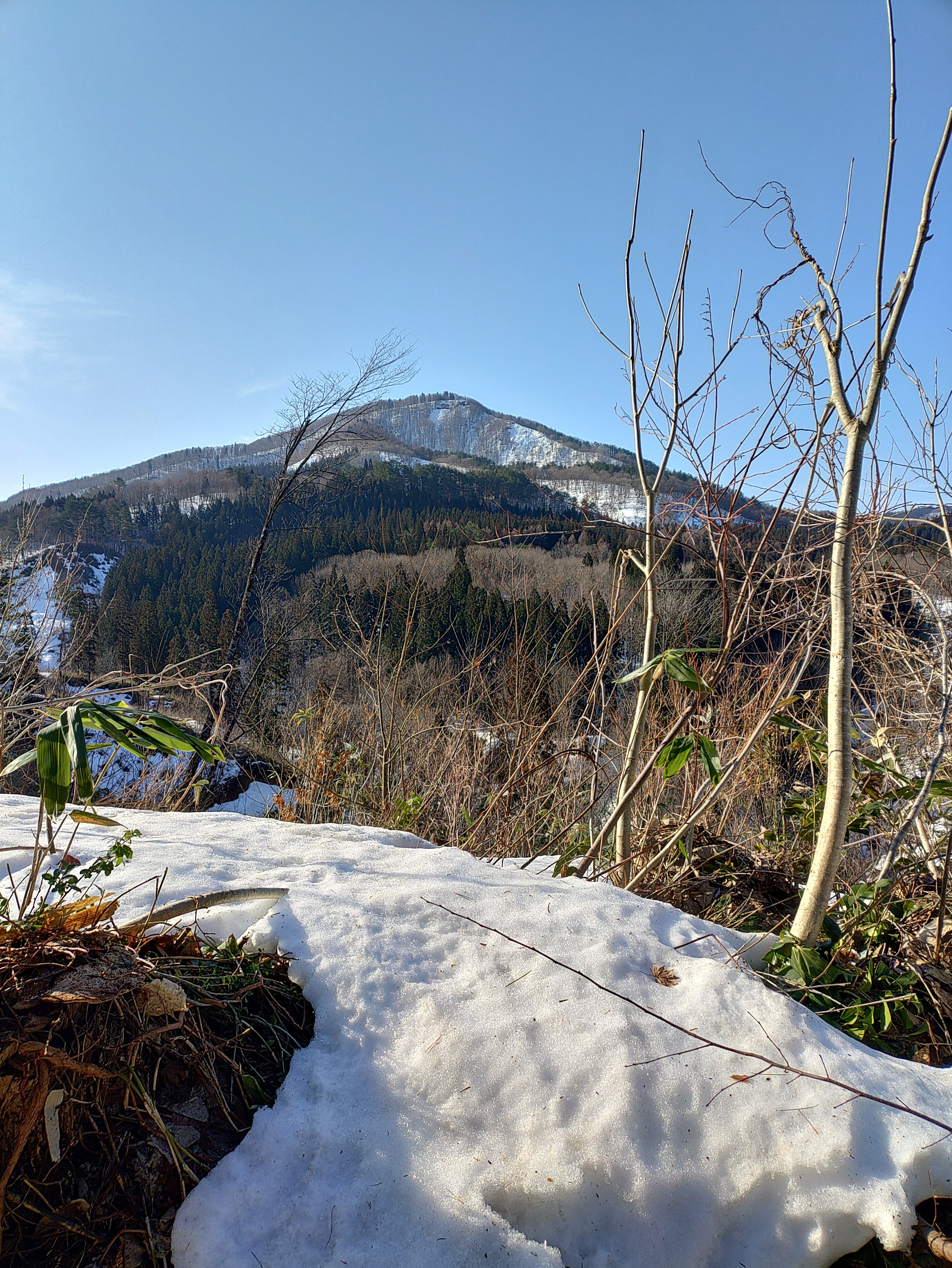 昨年登山に行ったのですが林道が通行止めで、2度戻ってきました。と言う事で今日はリベンジ!近いルートは除雪されてないので、昔のルートで地元の南郷温泉から登りました。