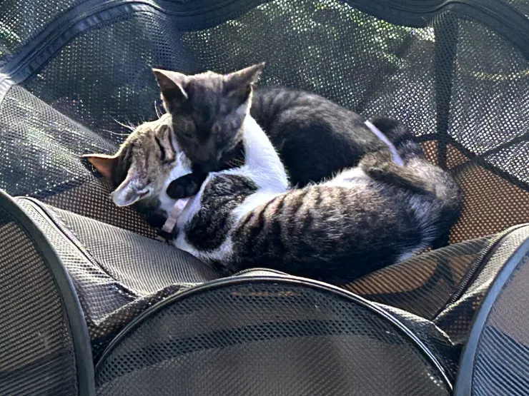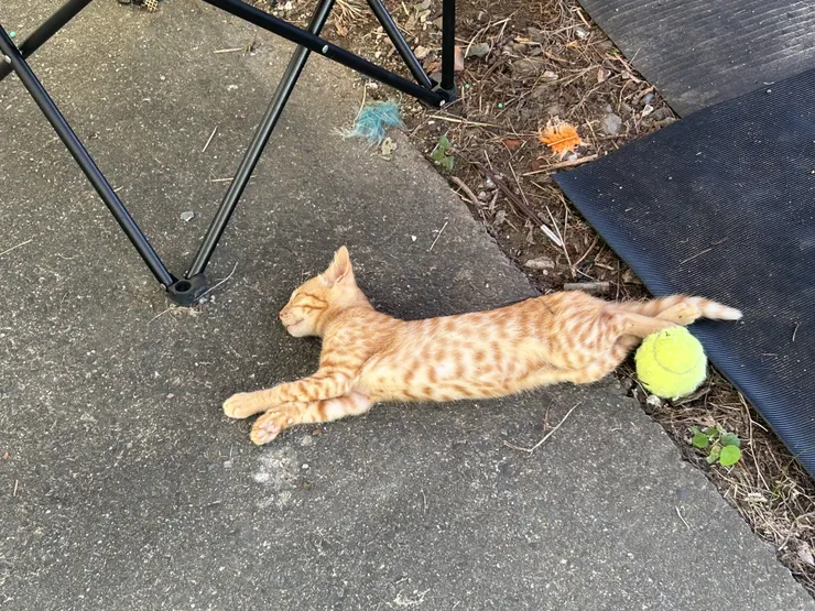 猫シェルターの上がハンモックみたいで涼しいらしいです。