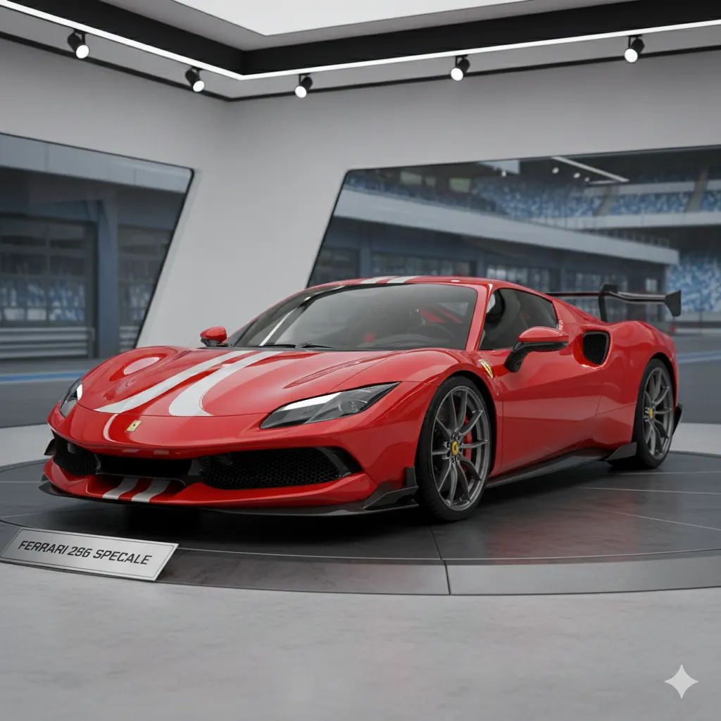 Ferrari 296 Speciale296 GTBのサーキット特化型ハイパフォーマンスモデル。空力性能と軽量化を徹底追求