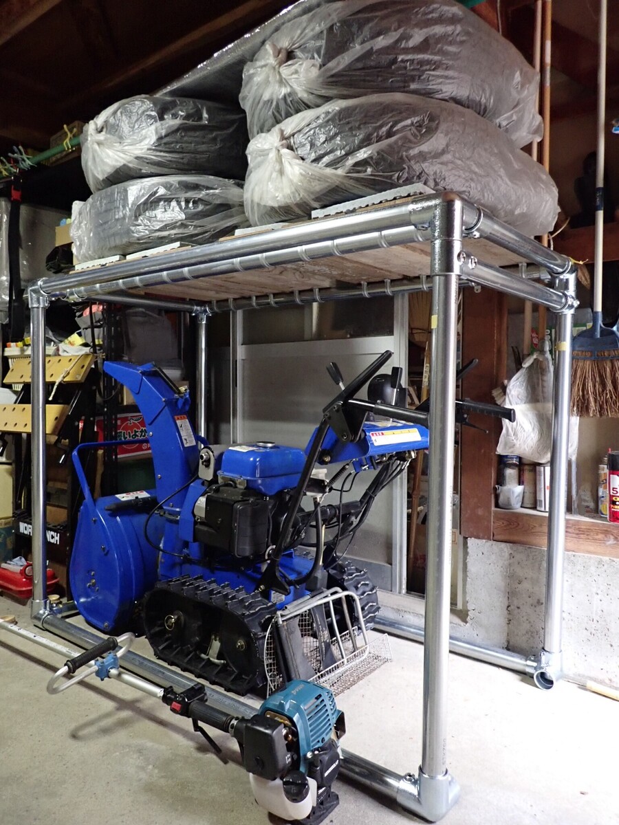 トップ > TORQUEフォト > GWの工作(その後) たろ三郎@G07 2024/05/13 16:11 GWの工作(その後) 屋外に除雪機を置くために格納庫を作ったのですが、車庫内に置けそうです。 タイヤ落ちんだろうな(^o^; いいね 共有する 共有する X facebook LINE リンクをコピー コメントする 2 件の返信 (新着順) ミュートしたユーザーの投稿です。 投稿を表示 にしもん@50s pro 2024/05/13 18:45 二重にしてある所が補強なんですね😀🍺✨ 筋交いとまではいかなくても奥側にパネルを付けると補強にもなりそうですね💪😀🍺 いいね 返信する ミュートしたユーザーの投稿です。 投稿を表示 たろ三郎@G07 2024/05/13 19:23 にしもん@50s pro 助言ありがとうございます。 二重になっている部分は、除雪機を入れる際に上げました。普段は下に下げています。 いいね 返信する ミュートしたユーザーの投稿です。 投稿を表示 にしもん@50s pro 2024/05/13 20:17 たろ三郎@G07 可動式でしたか😀🍺✨スバラシイ✨ じゃあ角に3角パッチを溶接かネジ止めでぺちゃんこにならずに済みそうです😀🍺💨 いいね 返信する ミュートしたユーザーの投稿です。 投稿を表示 ドラえもん 2024/05/13 17:10 太いパイプで組んであるから大丈夫だと思いますが、タイヤの重みでねじれなければ良いんでしが…。😂 いいね 返信する ミュートしたユーザーの投稿です。 投稿を表示 たろ三郎@G07 2024/05/13 17:19 ドラえもん コメントありがとうございます。 揺すってもユサユサ揺れることは無いです。ただジョイントなのでクランプよりは強度はありません。 タイヤは固定せず積み上げただけなので、それが心配です。車庫内を整理して床置きにしようと思っています。 いいね 返信する
