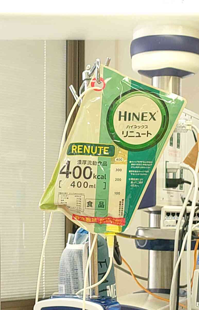 どんなもんか看護師さんに聞いたら以前みんなで試食会をしたことがあるらしく、甘くないプレーン味の飲むカロリーメイトみたいな味だったそうです😀