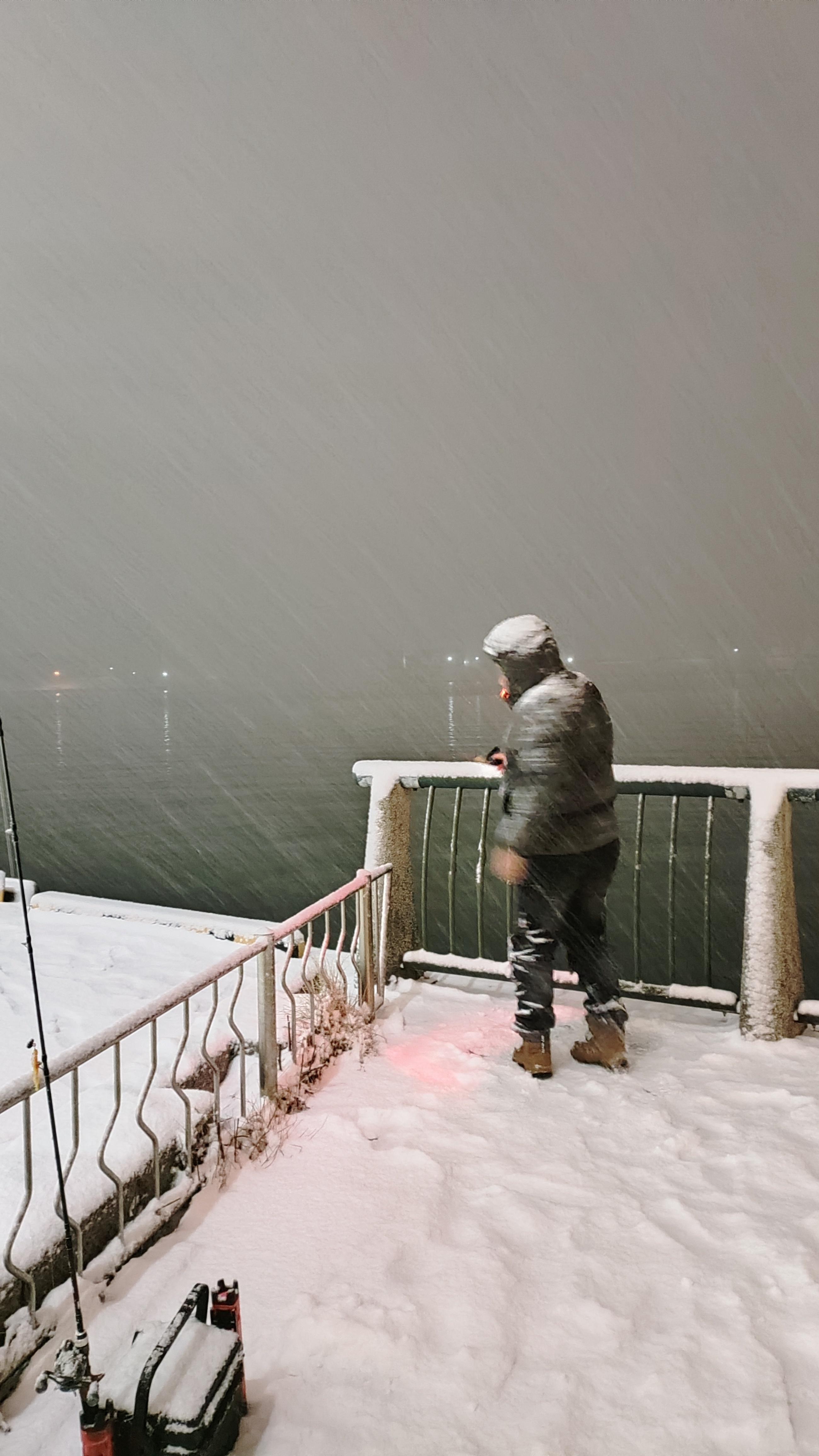 しかし凄い雪!!全然止まず。ただ、気温はマイナス1℃位で寒くは無い。師匠はマゾイのちびっ子をヒット、その後40センチのアイナメ、30センチのアイナメ、またちびっ子マゾイをヒットしますが私は釣れず…