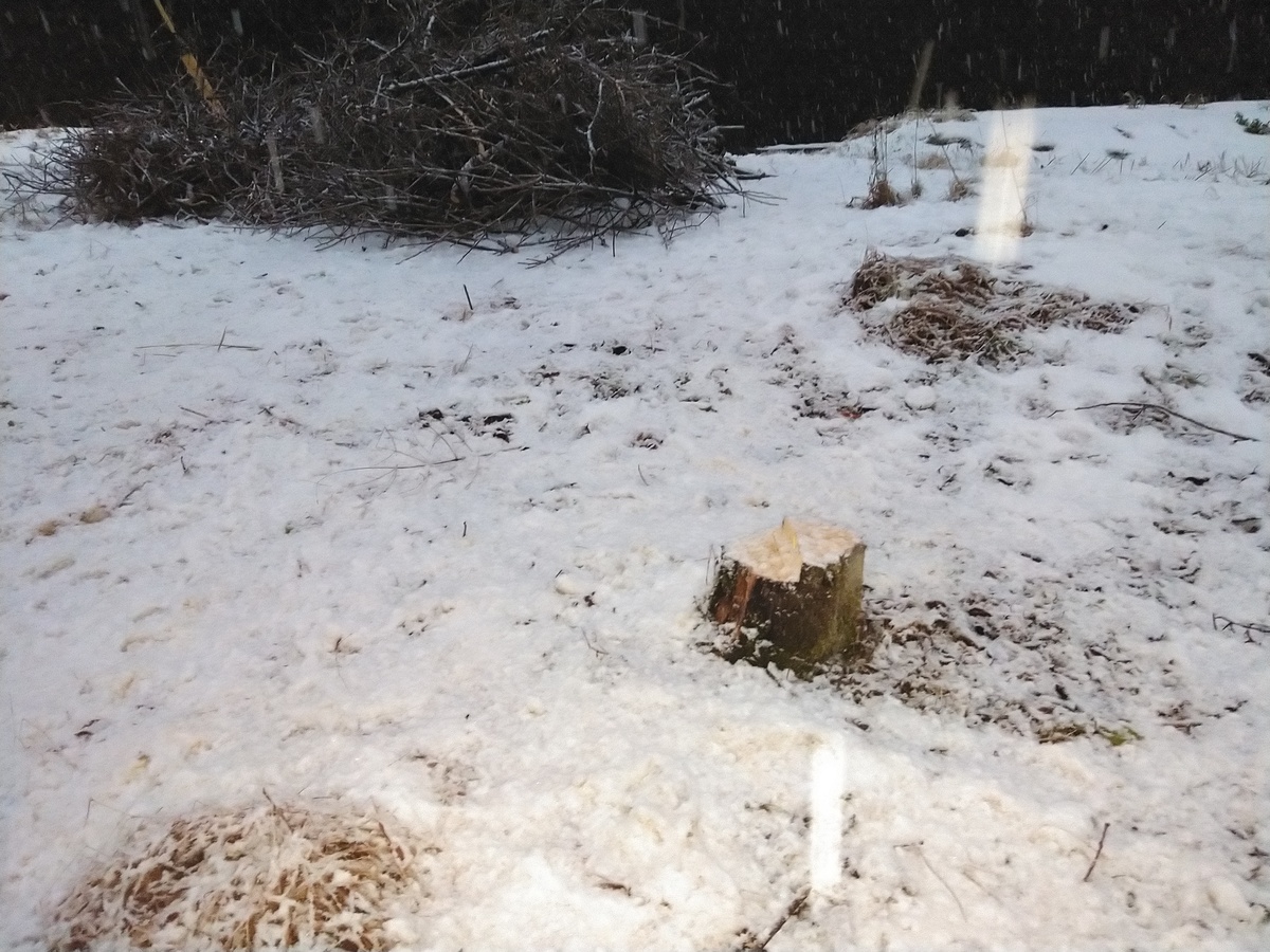 熊が毎晩柿を食べに来ているため、柿の木2本を伐採してもらいました。
