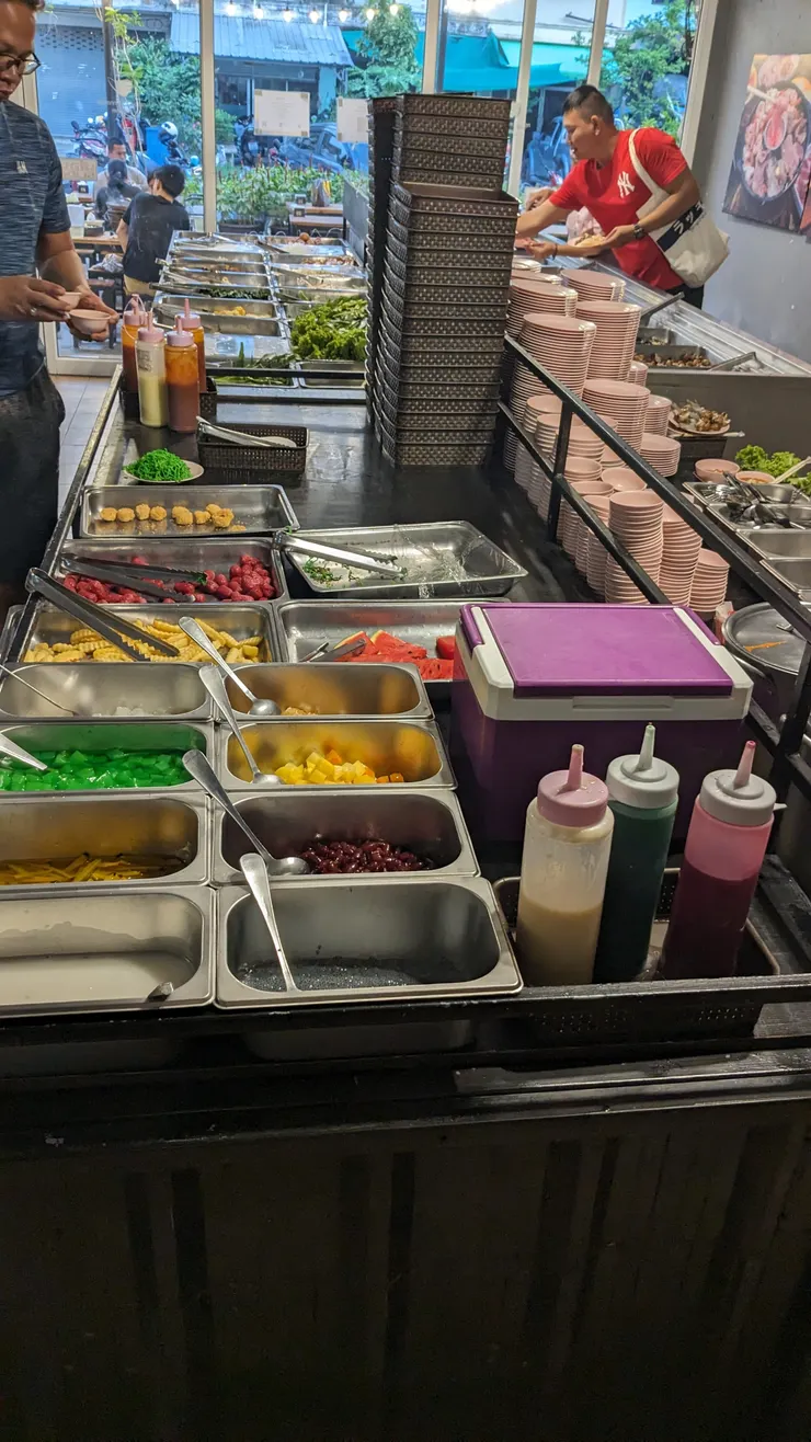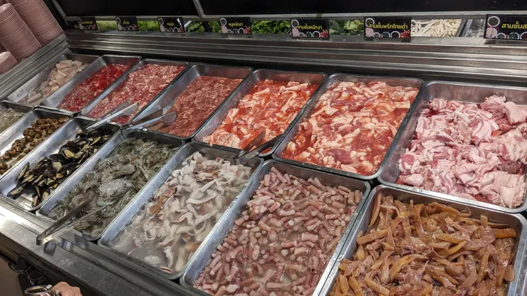 基本こういったレストランに行くと、お客さんは現地の人だらけで、英語のメニューや説明もほぼありません。タイ人の知り合いと行きましたが、私がピッチャーにあった水をコップに入れて飲んだら、実はしゃぶしゃぶのスープで、店員さんや知り合いにすごく笑われた良い思い出です。