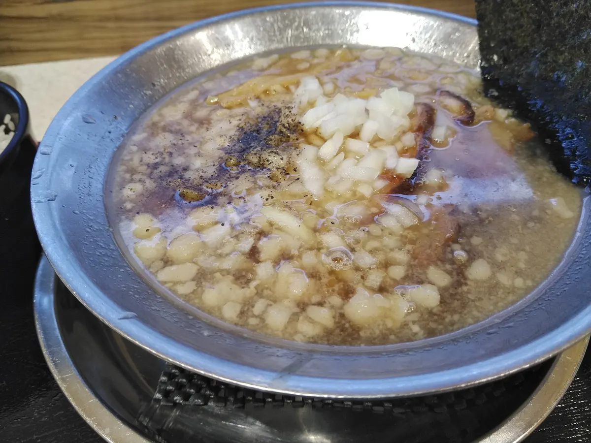 投稿を表示背脂ラーメンのスープは煮干し醤油です。旨しです。