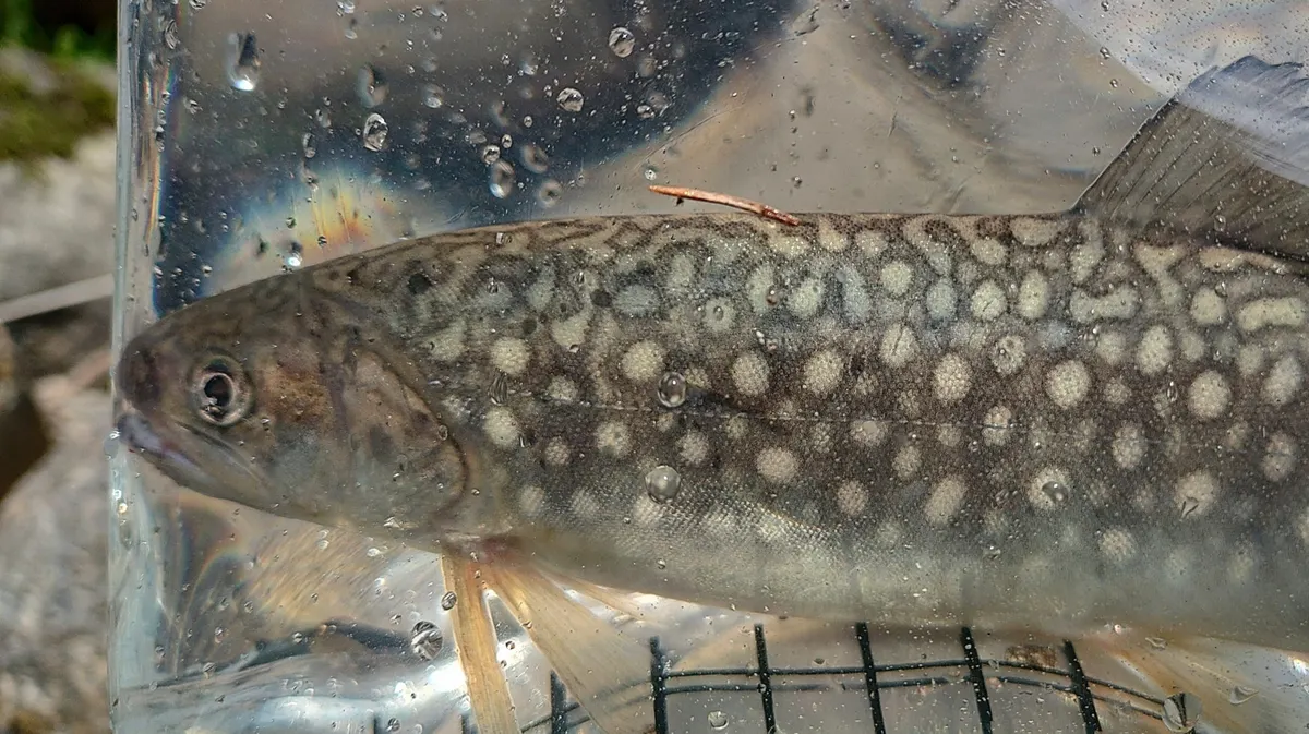 そのイワナの沢で釣ったイワナ。観察ケースでじっくり見た後リリース。