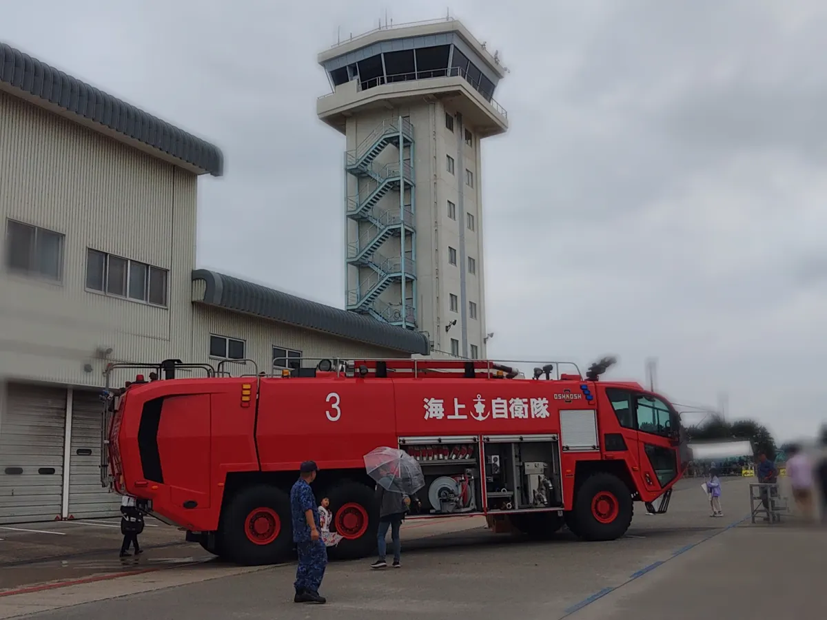 海上自衛隊の消防車。いつもこの角度で見ることが多くて気づかなかったのですが、