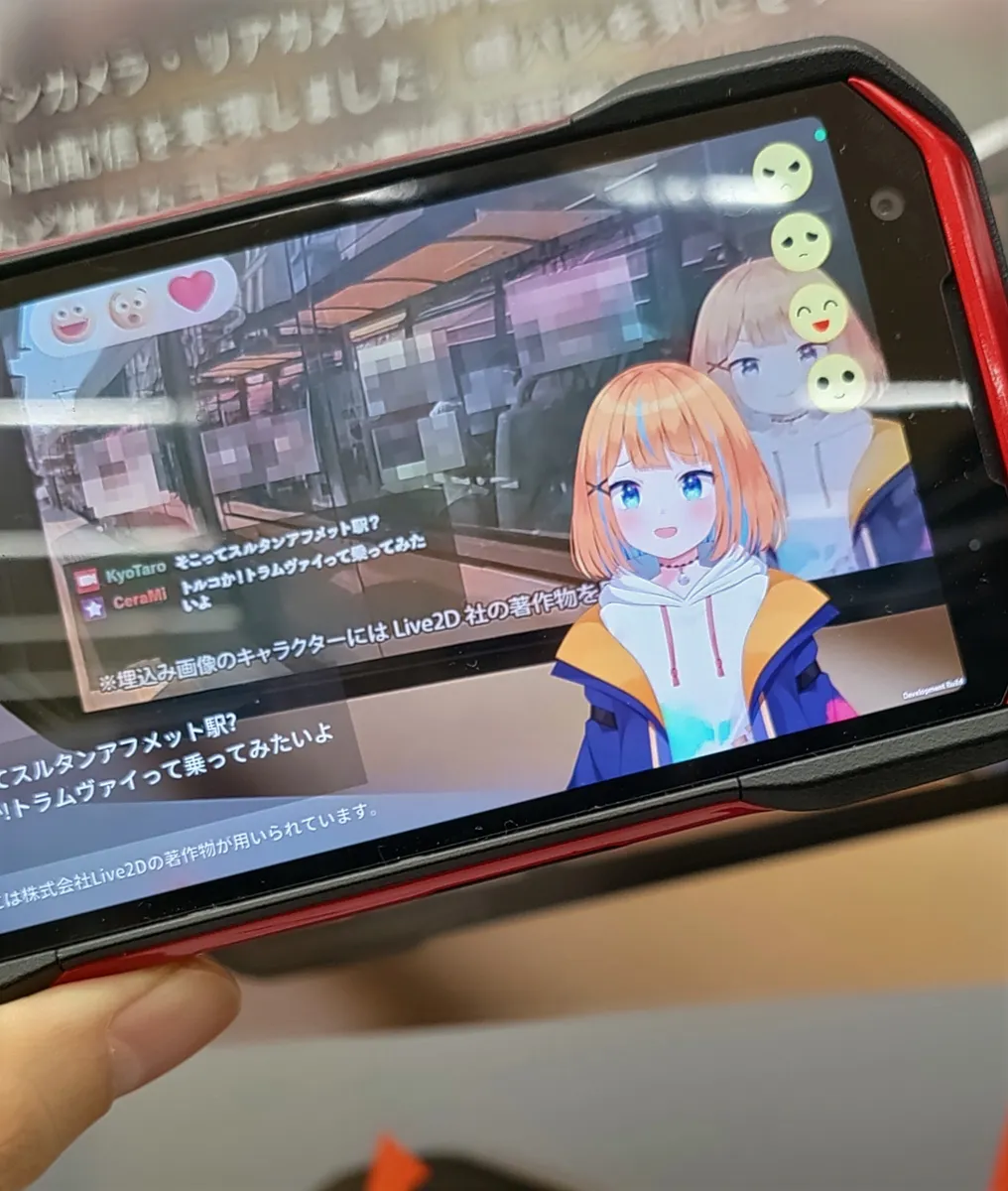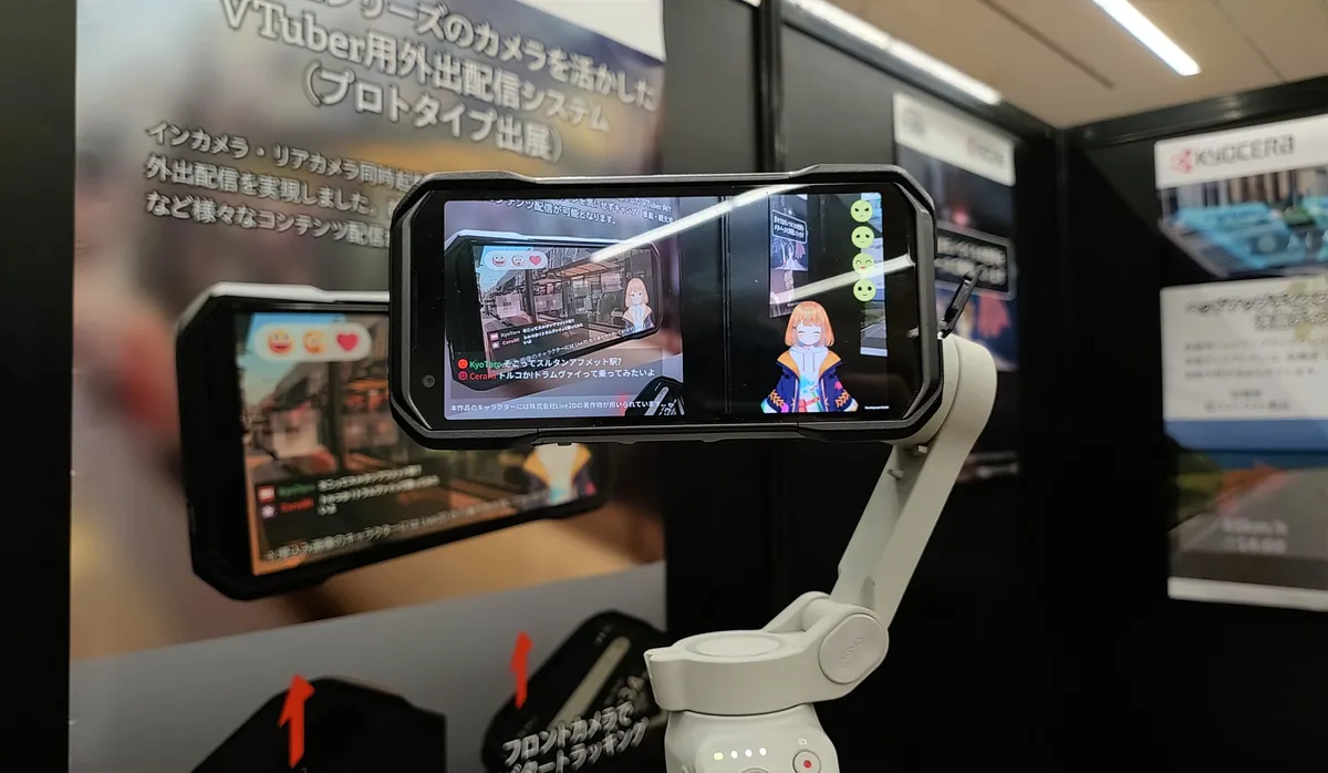 展示されていたのはジンバルを取り付けたG06🔥 ニュース記事で紹介していたように、外出先からVtuberのような配信ができるというもの。