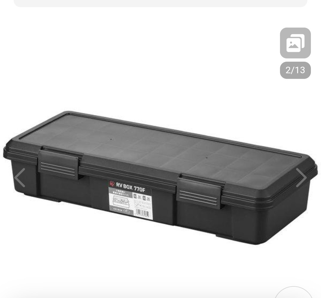 23ジムニーの荷室フラットによく使われるRVBOXなら上にマットでも敷けば段差もある程度解消できて愛犬も踏ん張らなくても良いし、スノアタしないので最低2本だけチェーン入れば良いかな✨とホムセンとかカー用品店巡ってきたけどデカイ箱しかありませんでした。(笑)