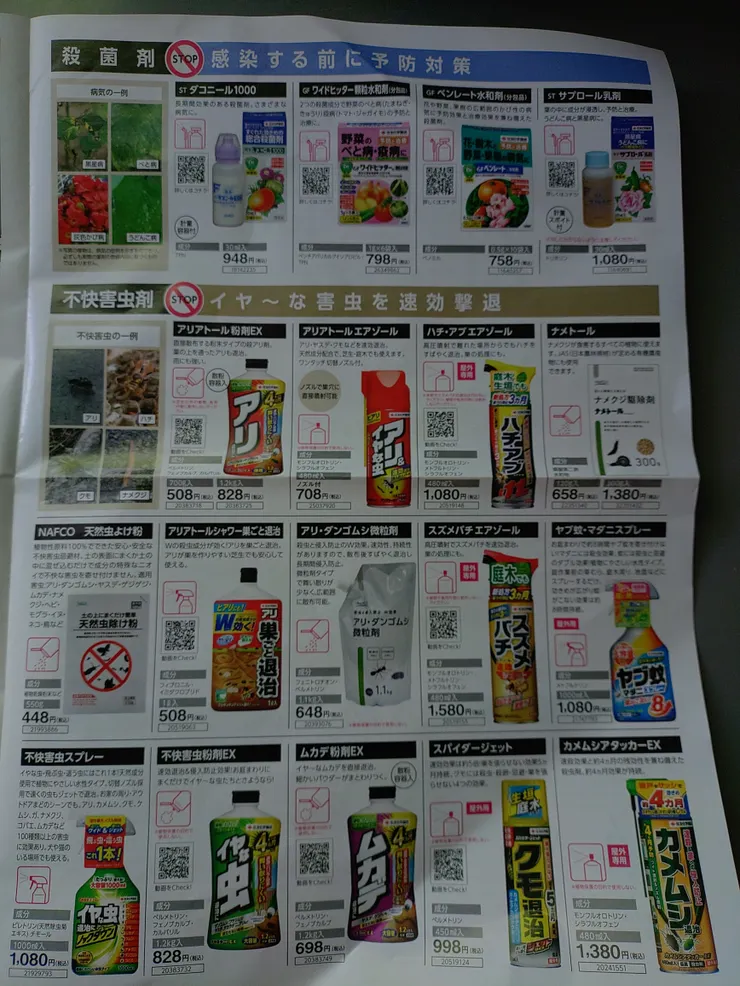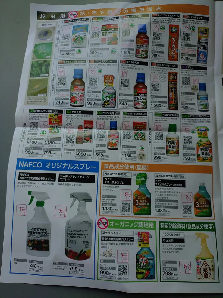 ナフコの広告ですが病気や虫の農薬一覧表がついてます😀👍✨凄く見やすい❗