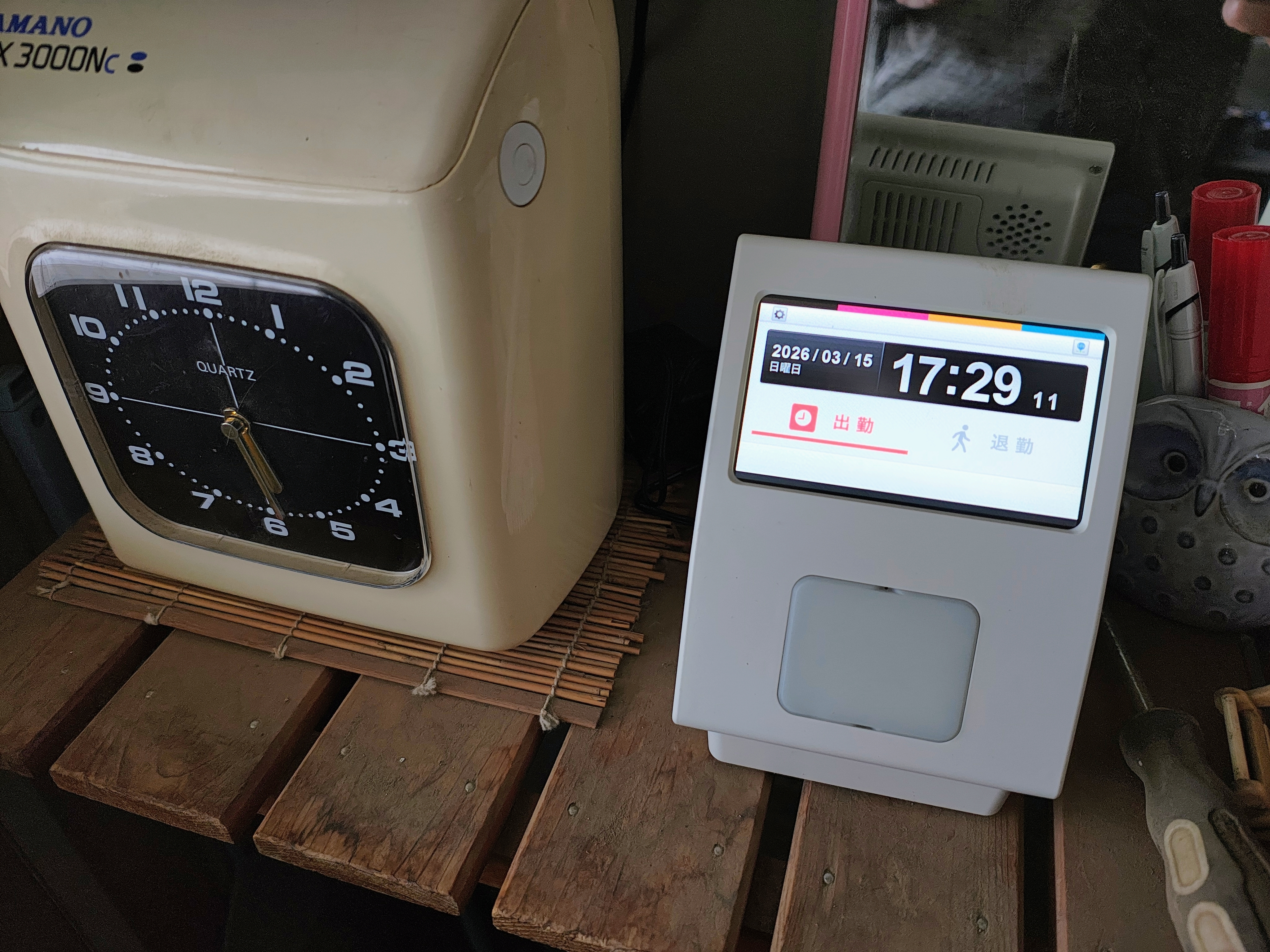 遂にこんな山の中でもICカードで、タッチ勤怠が出来る様になりました💥😀🍺仕事終わってから初期設定、ICカード登録、勤怠システムへの紐付け作業!、、、もう残業気分です😀💦🍺