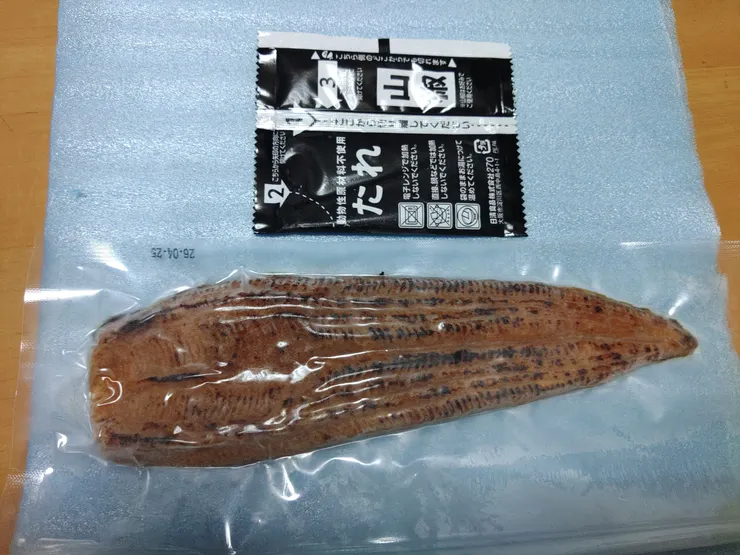 画像4枚目と5枚目は箱から取り出した謎うなぎです。皮側は見た目は似せていますがつるペタなのね。