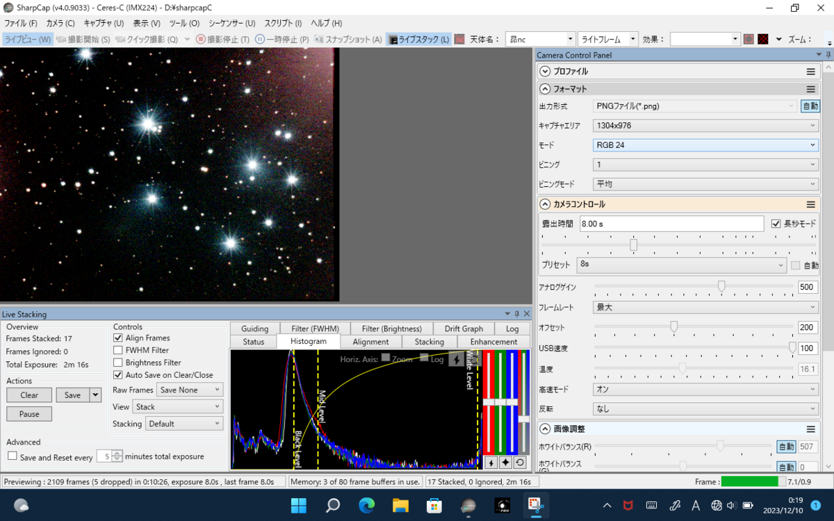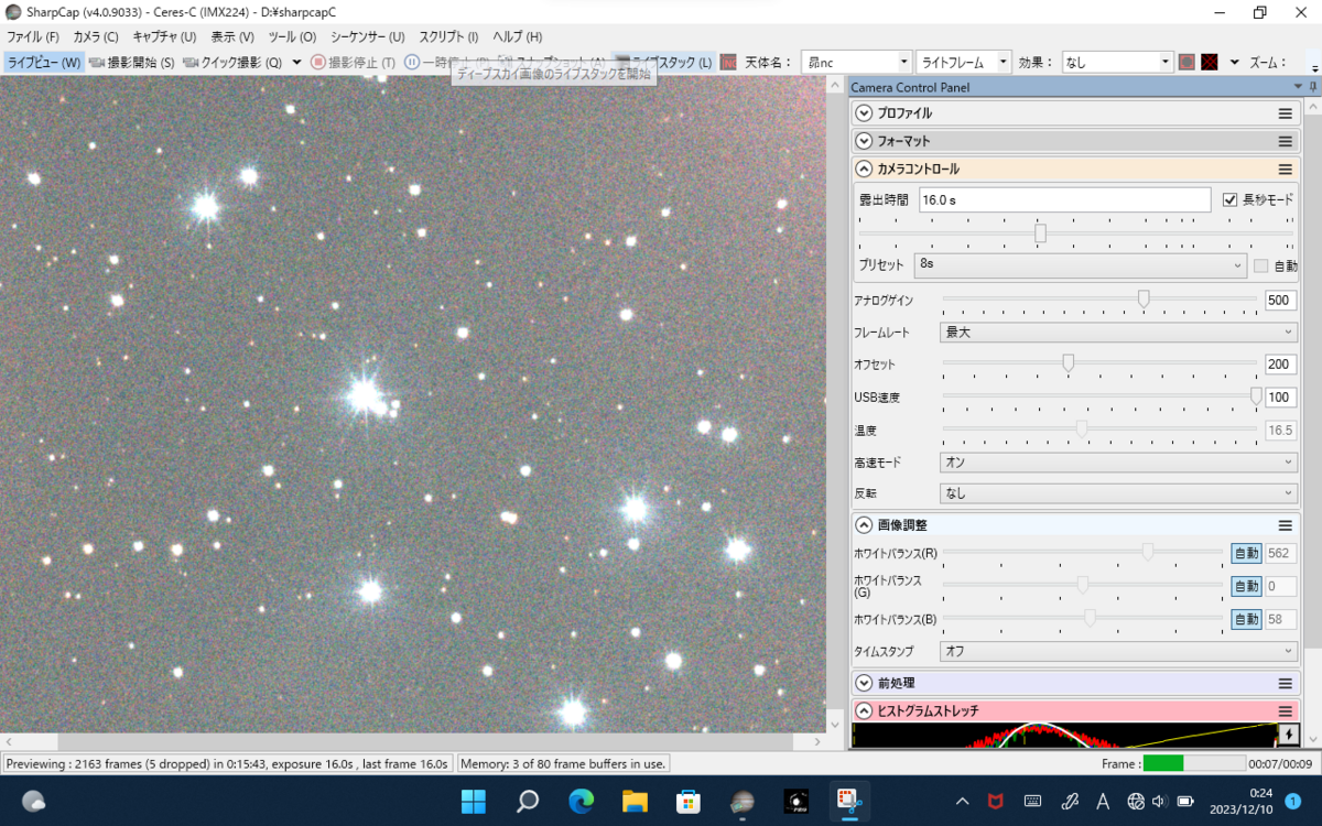 ちなみにライブスタックしなくてもこのように写ってます