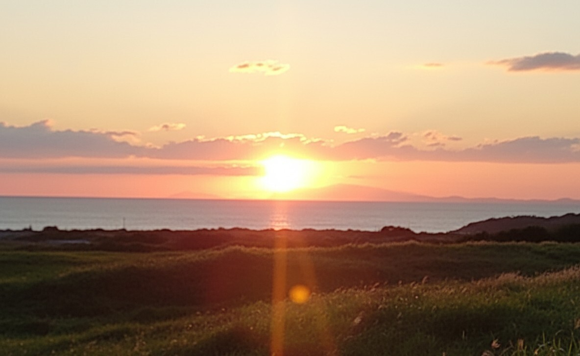 綺麗な🌇有り難うございます。椅子に座ってたら 足元が冷えるので 今季初 毛布をひざ掛けにしていますよ〜😄