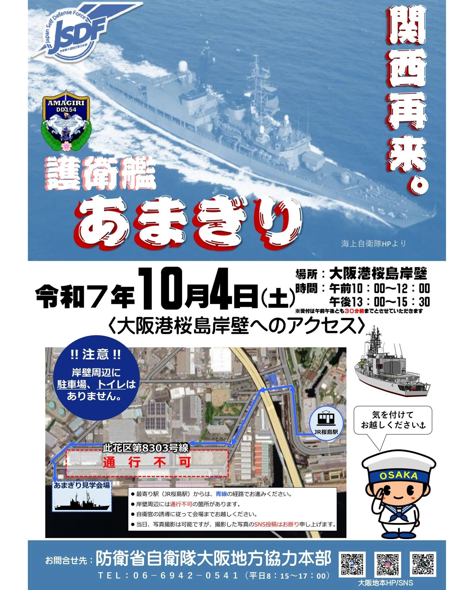 護衛艦「あまぎり」がMINATO天保山まつりに合わせて大阪港中央突堤に寄港します。