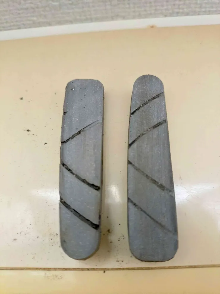 昨日の激坂ツアーの戦いが如何に厳しかったか、ブレーキシューが物語っています。