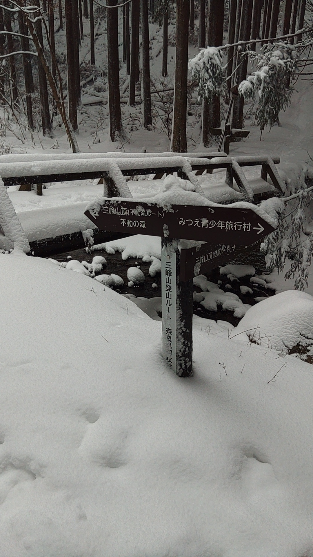三峰山は5回目の登頂ですが、当日は雪がすごく降っていて、山頂付近では、踏み跡が消えていくくらいでしたので、八丁平ヘ行くのはやめて下山しました