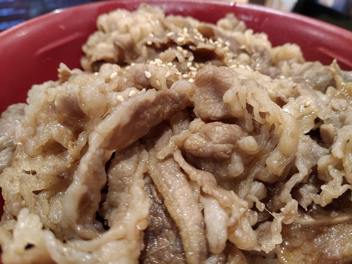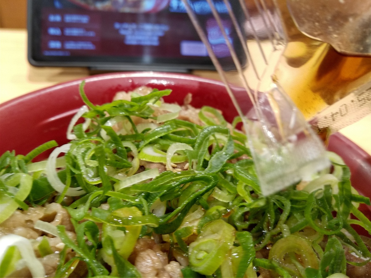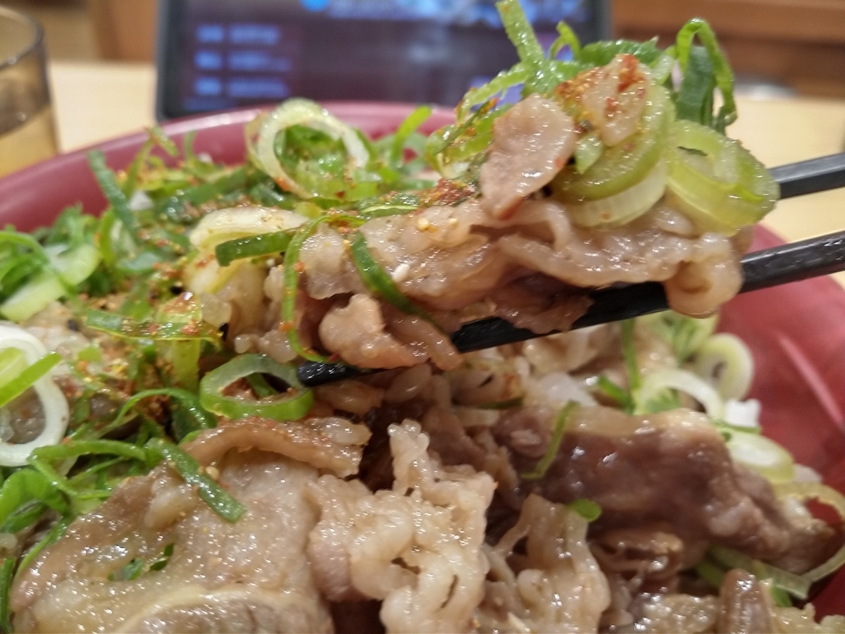(^-^)すき家の期間限定牛カルビ焼肉丼特盛に葱トッピングです。