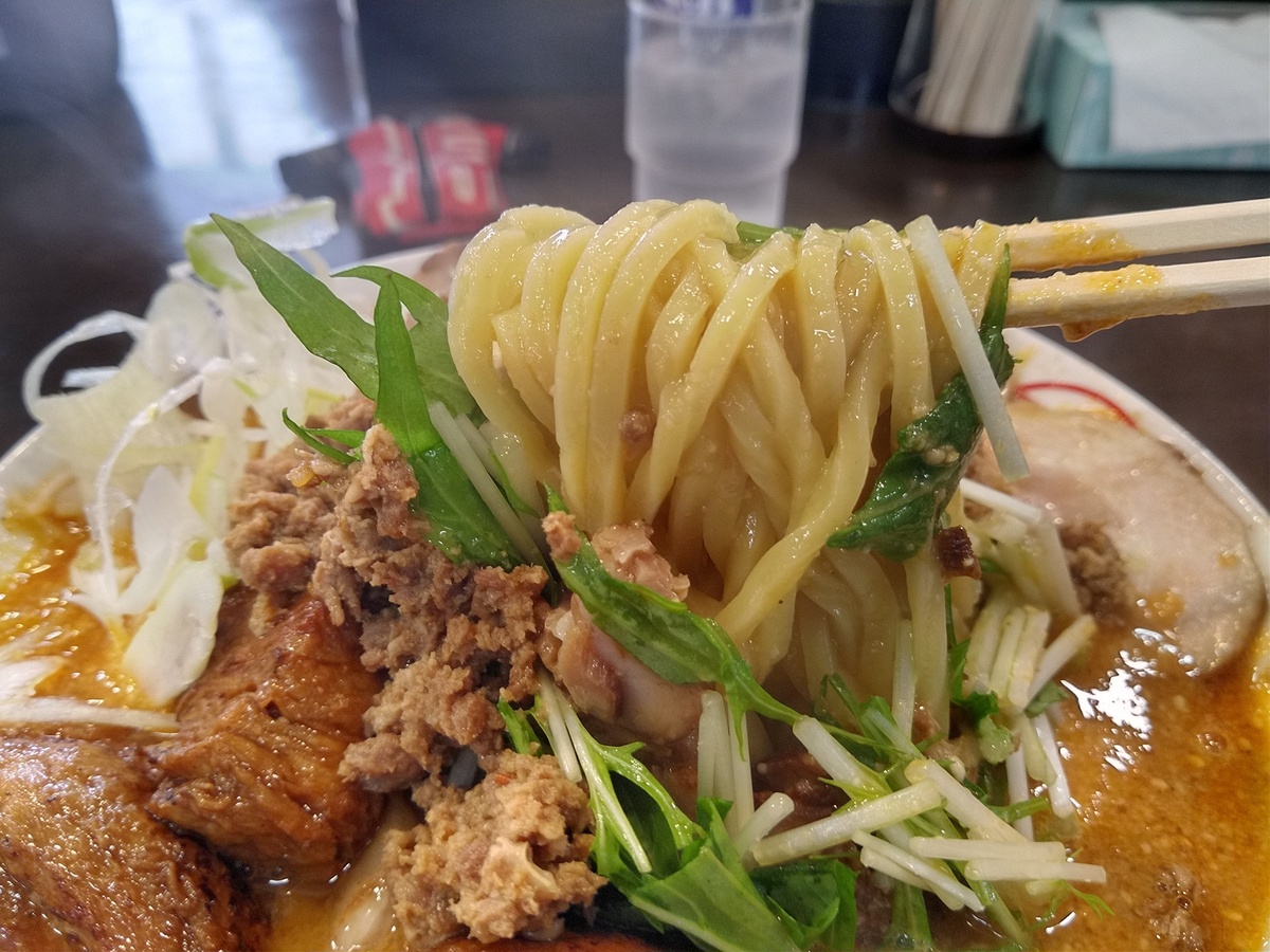 柔らかめで頼んでもちょい硬い断面が四角く立った自家製麺!