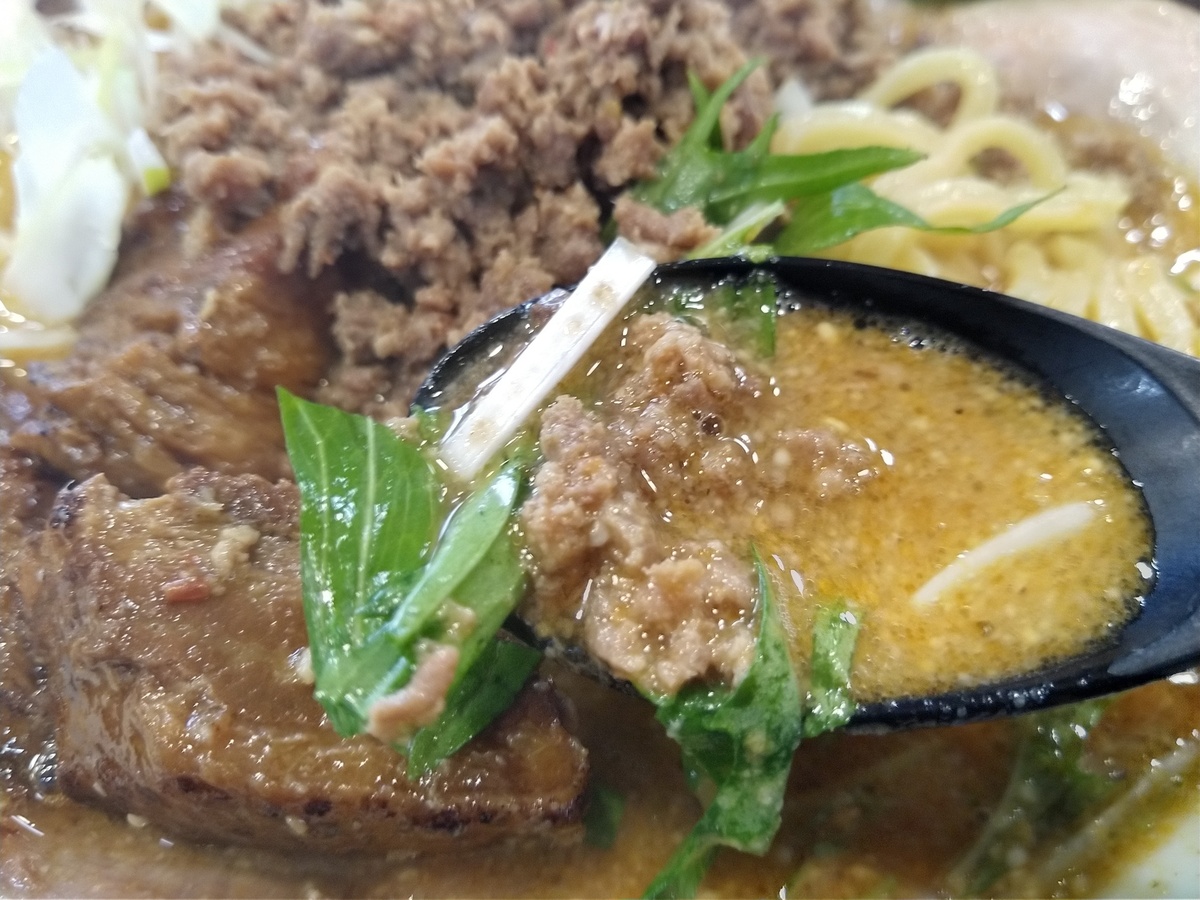 しょっぱ濃厚な胡麻が強烈な坦々スープ。