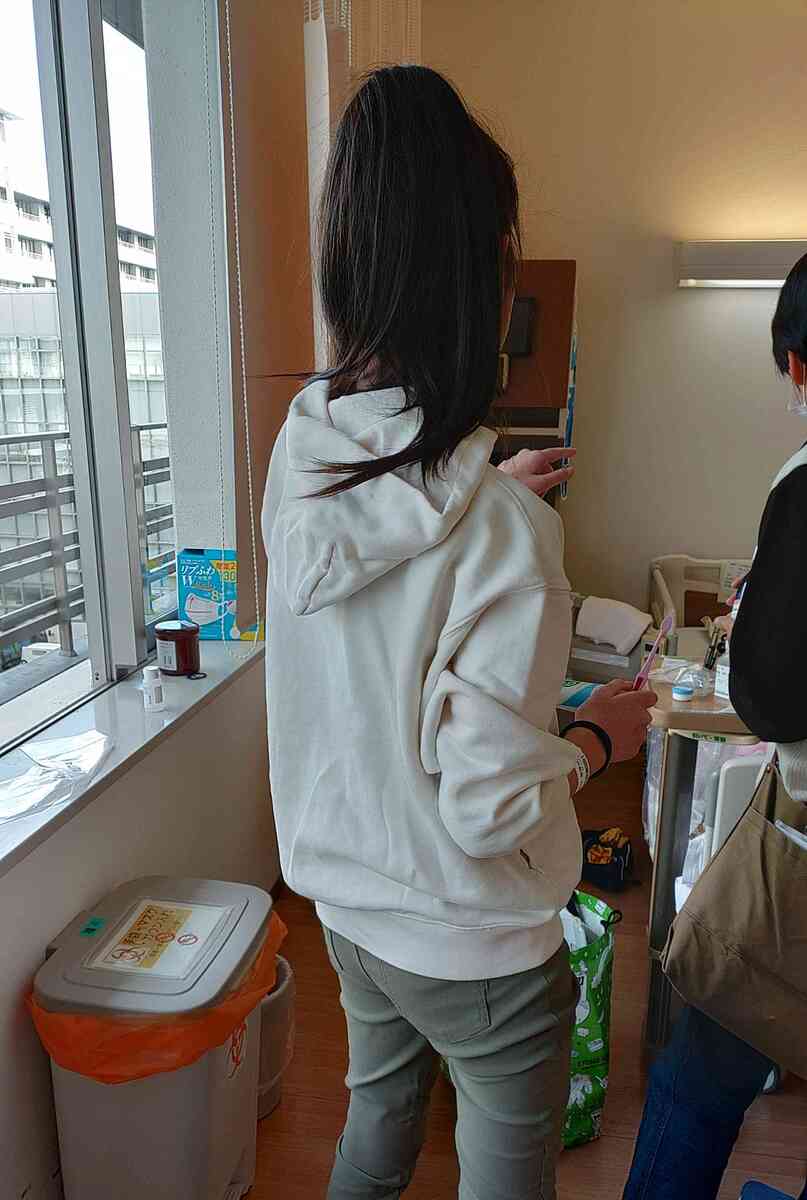 病室へ行くと、既に私服へ着替えた娘子がいました。病院着でない娘子をみるだけでじんわり涙が浮かんできます