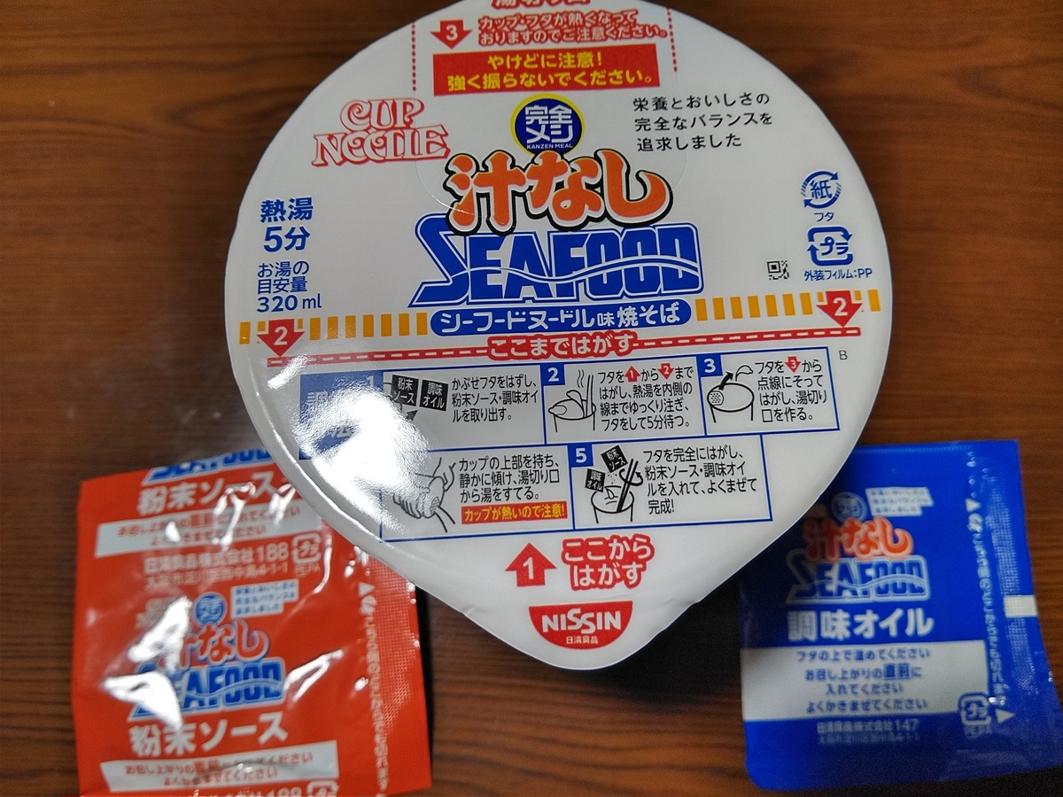 (^-^)完全メシから汁なしシーフードヌードル味焼きそばですYO
